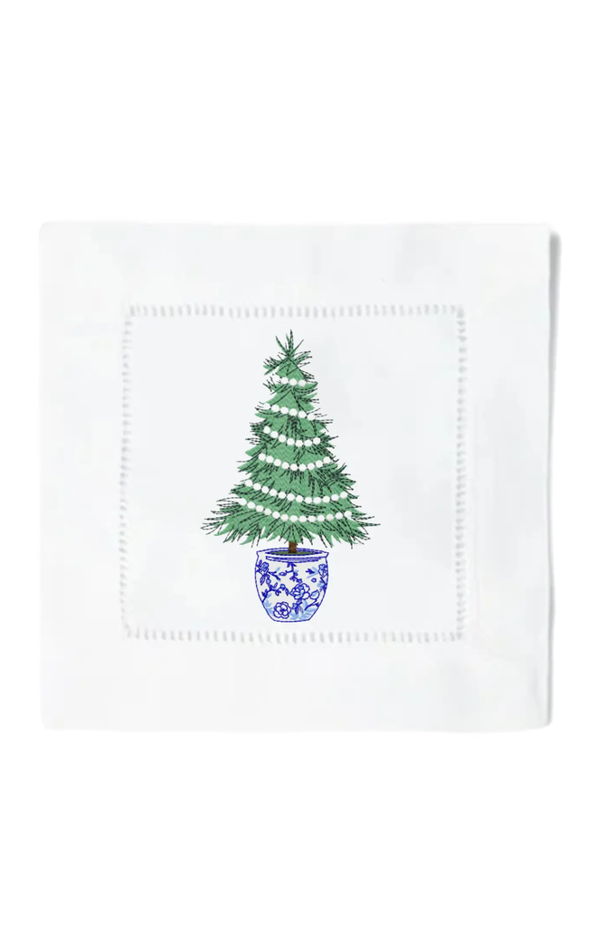 Blythe Embroidery Co. Chinoiserie Christmas Tree Cocktail Napkins