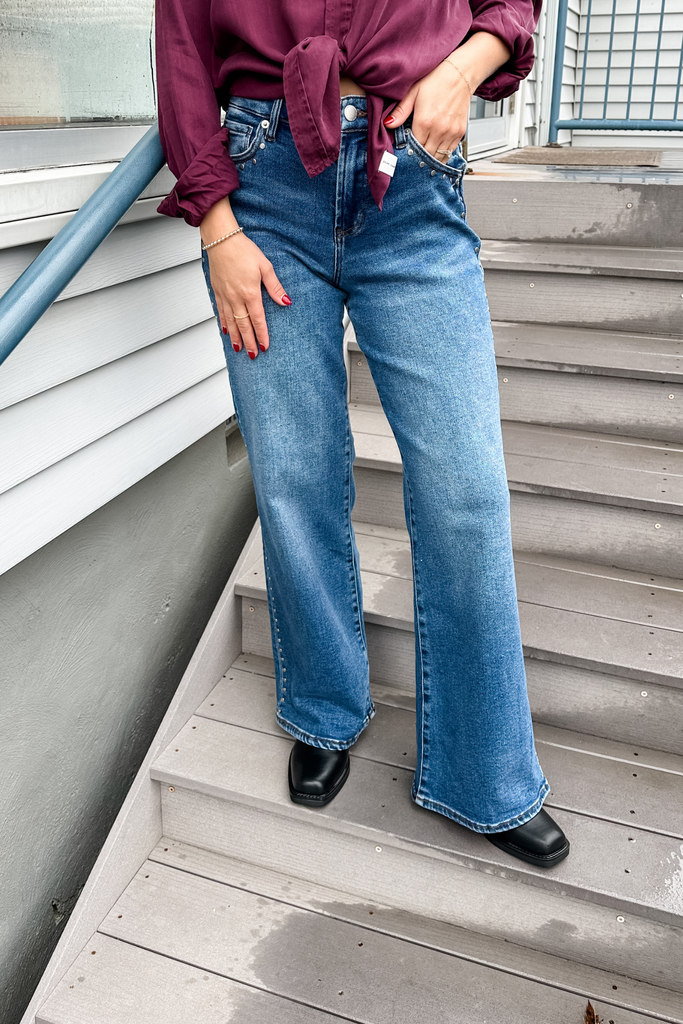 Hidden Ella High Rise Cuffed Wide Leg Jeans
