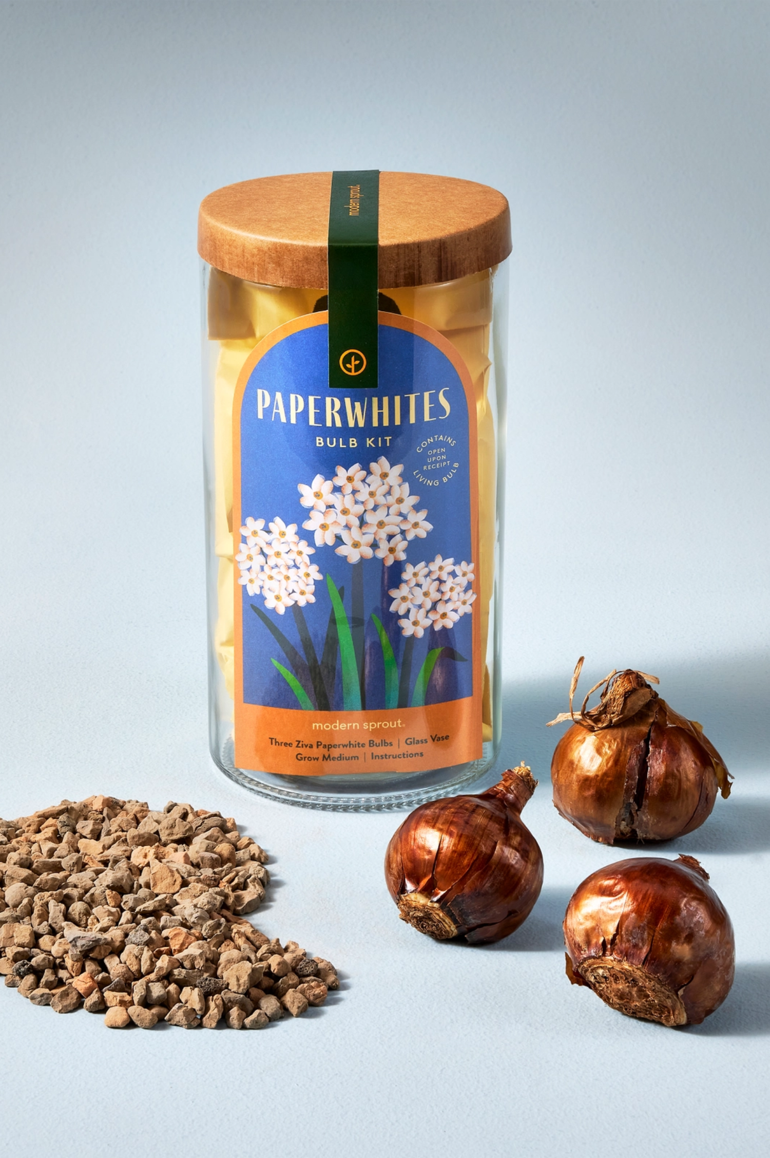 Combat winter blues with fresh blooms. Within weeks the included bulb(s) will produce beautiful blooms. Kits are elegantly packaged in a glass vase and include a premium bulb(s) tucked inside a recyclable paper bag, grow medium, and simple instructions. Minimal sunlight needed. Limited edition, our Bulb Kits sell out every year. Hurry, before they're gone.