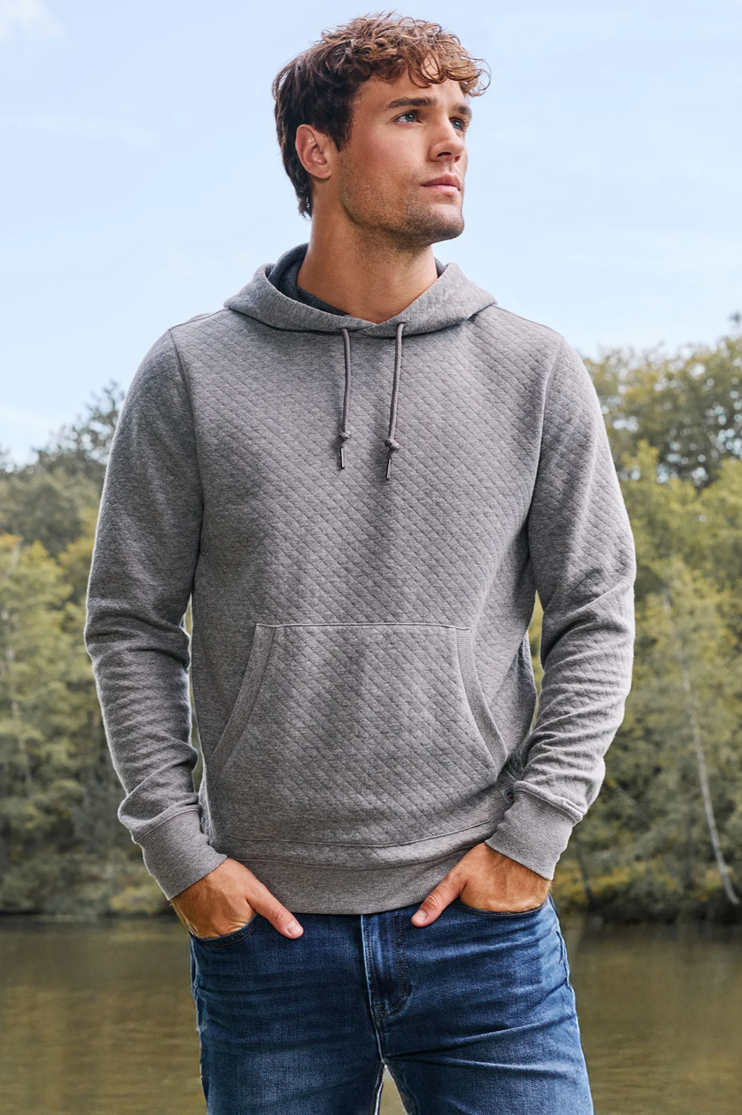 Made from an extremely soft cotton blend with classic diamond quilting, this hooded pullover sweatshirt will keep you comfortable while looking put together. Dress it up or wear it casually - either way, it looks great. Functional kangaroo front pocket; adjustable drawstring hood. Tailored athletic fit.