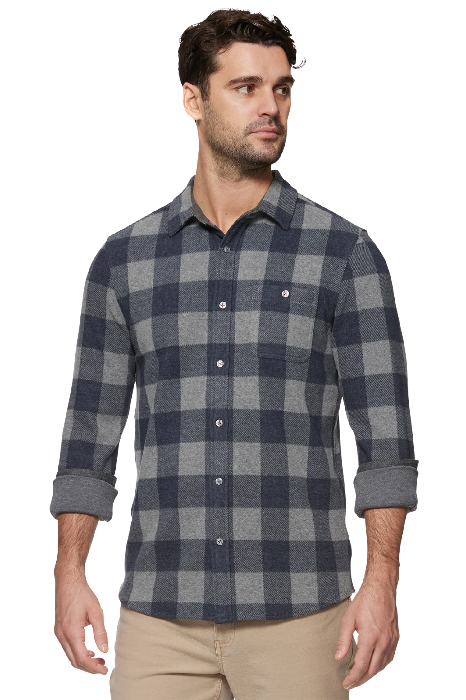 With a blend of extremely soft and stretchy knit performance fabric, you’ll find yourself reaching for this fall favorite all season long. Layer over your favorite tees, or on its own– this endlessly versatile flannel can be worn anytime, anywhere. Contrast fabric inside collar stand, back yoke, front placket, and sleeve cuffs. Single front chest pocket; button closures.