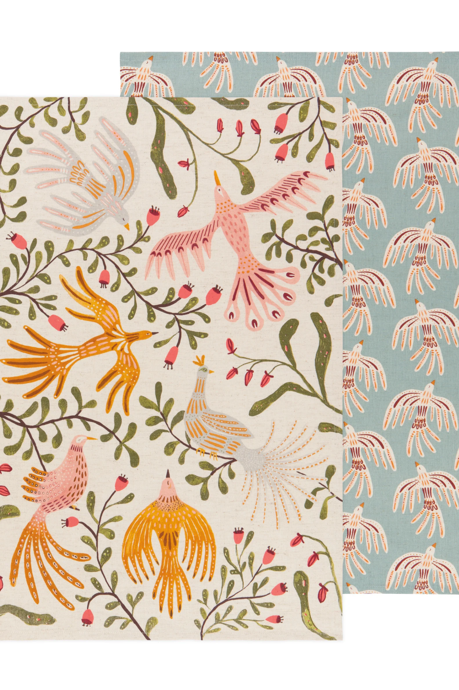 A delightful pair of cotton blend essential kitchen towels adorned with the enchanting motifs from the Plume collection. Delicate white birds and intricate vines dance across these dishtowels, bringing a touch of nature's grace to your kitchen.