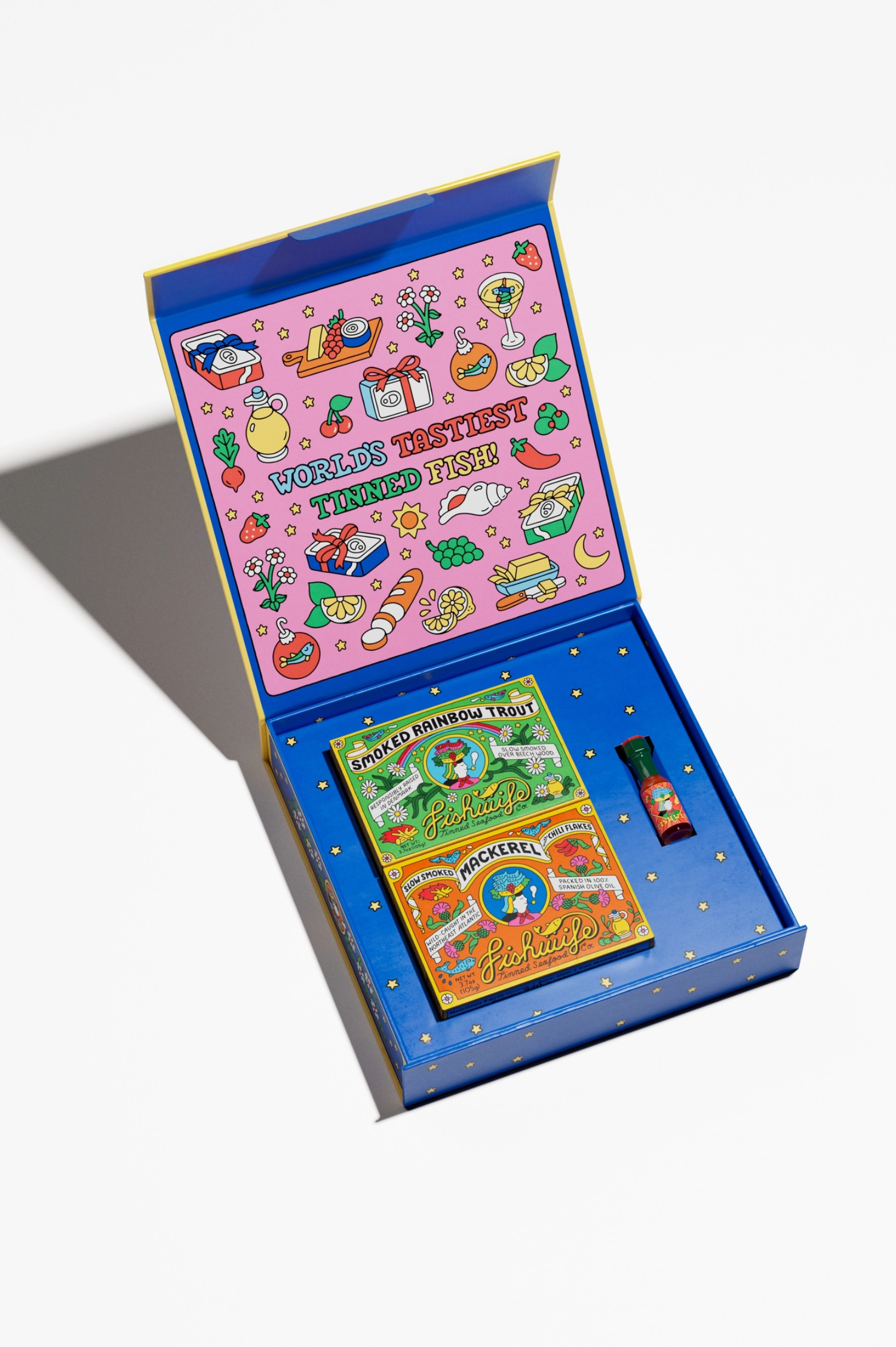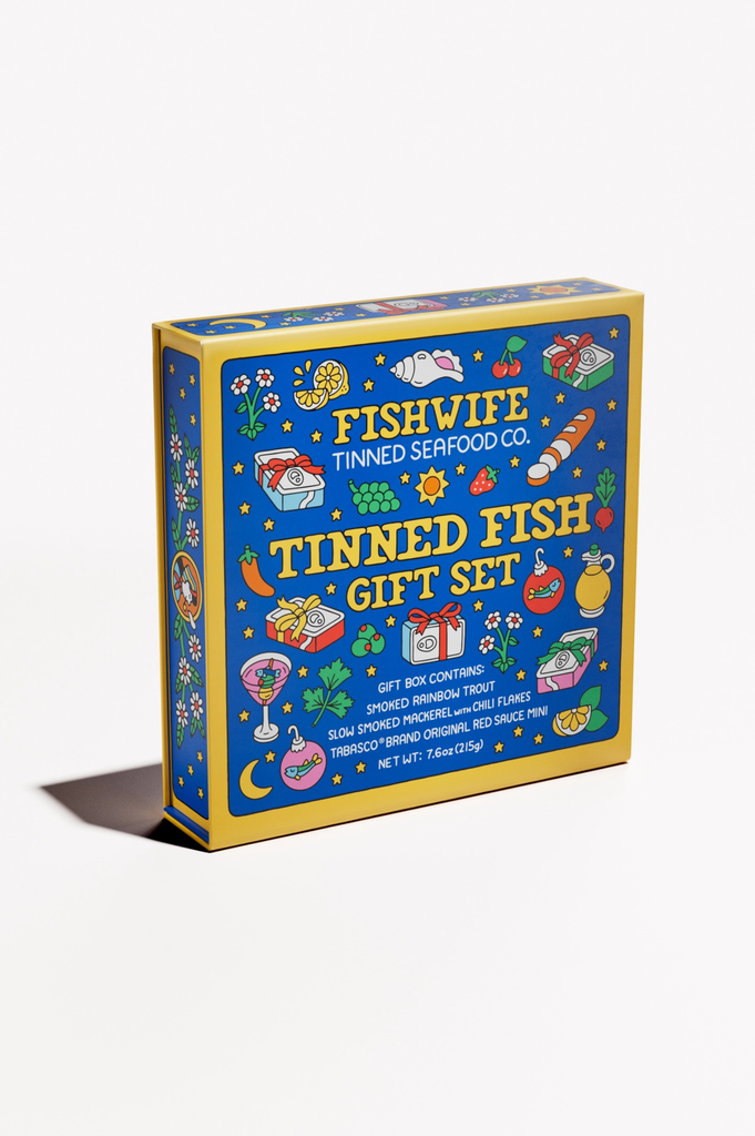 Meet the Tinned Fish Gift Set! Inside you’ll find two Fishwife favorites: Smoked Mackerel with Chili Flakes and Smoked Rainbow Trout, plus our custom Fishwife x Tabasco® Mini Hot Sauce. It’s the perfect trio of bold tins with a fiery little sidekick to match. Whether you’re gifting a friend, thanking a host, or treating yourself, this set packs big flavor into a small box.