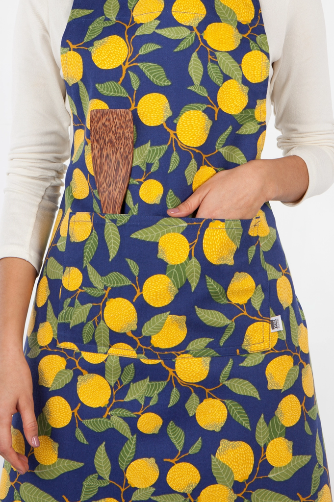 The juice is worth the squeeze with this Lemons Chef Apron by Now Designs. The charming print and bold colors let you express yourself in the kitchen or patio with a contemporary summer flair. This apron features an easily adjustable neck strap and extra-long waist ties.
