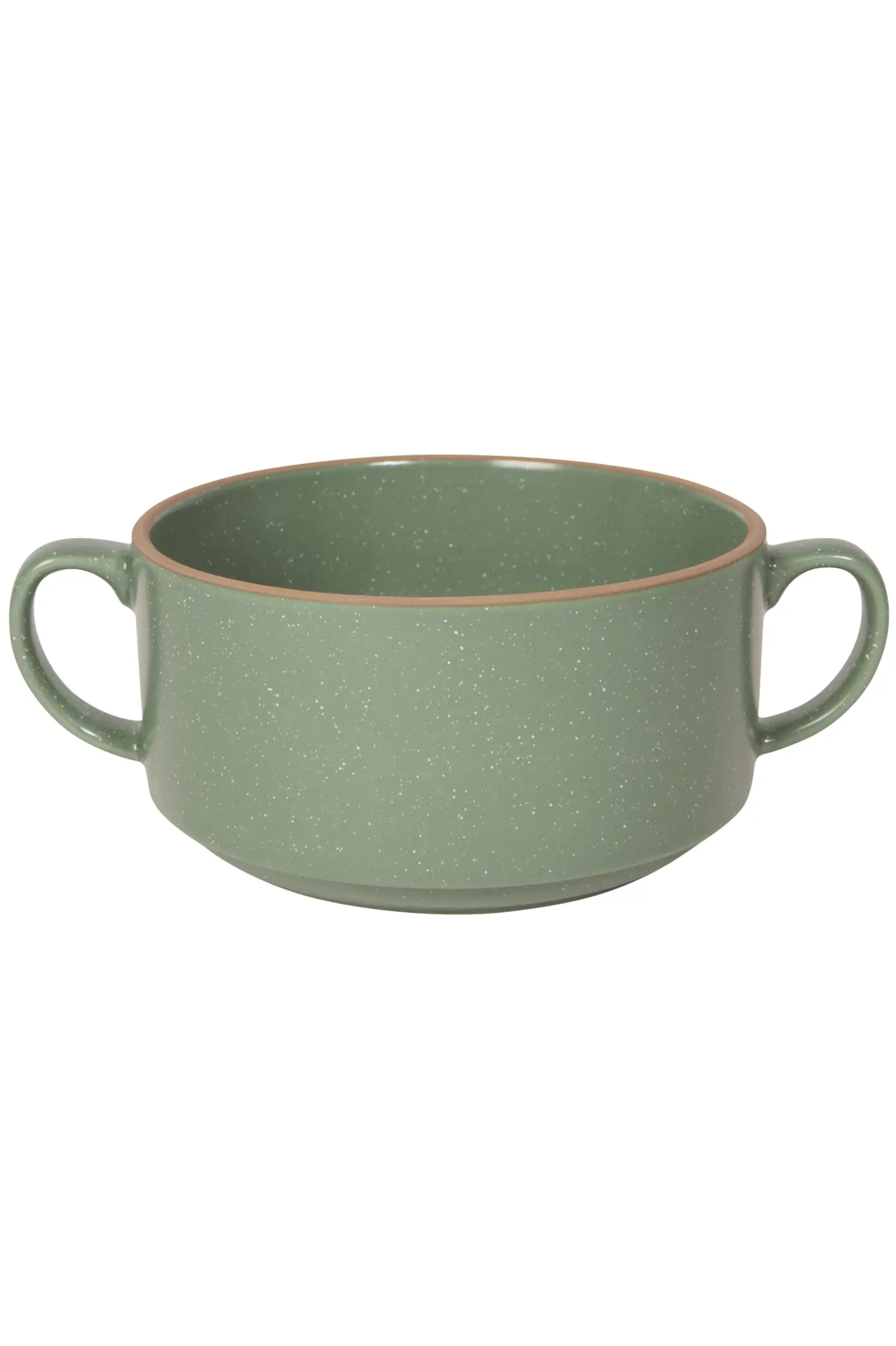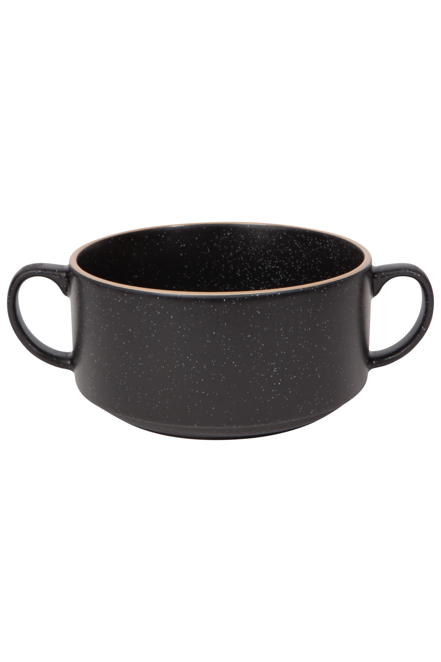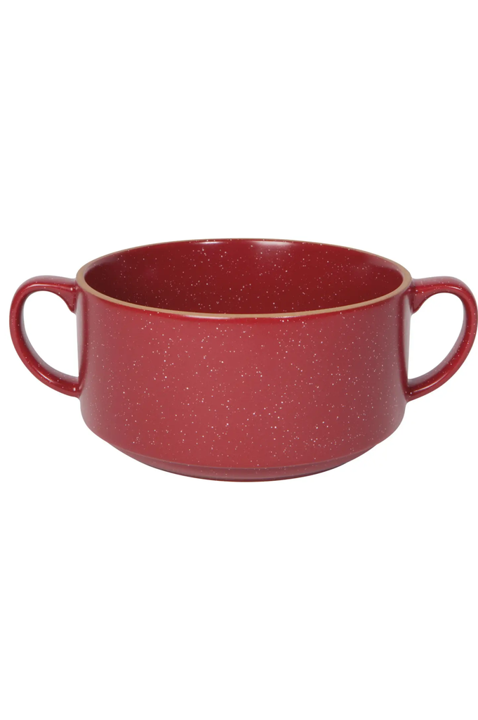 Available in three colors and featuring two handles, this soup bowl turns the heat down on your hands. Neatly stacks for easy storage.