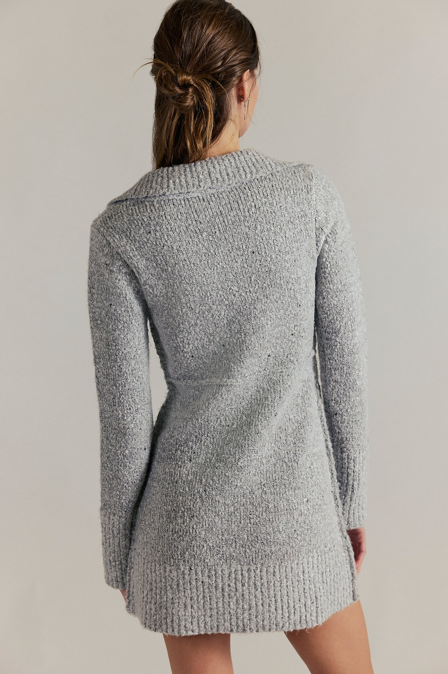 The epitome of cozy sophistication, this eclectic mini dress features a classic laced V-neckline, a comfy knit fabrication, and an effortless A-line silhouette.