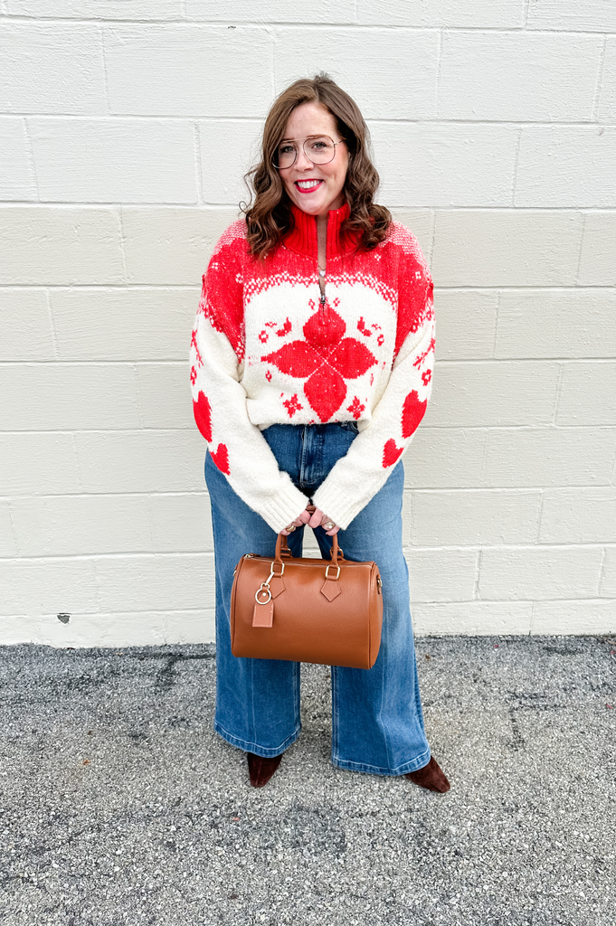 Cozy nights and festive feels, this slouchy sweater features a soft knit fabrication and an oversized, quarter-zip-inspired silhouette, creating the perfect laidback layer.