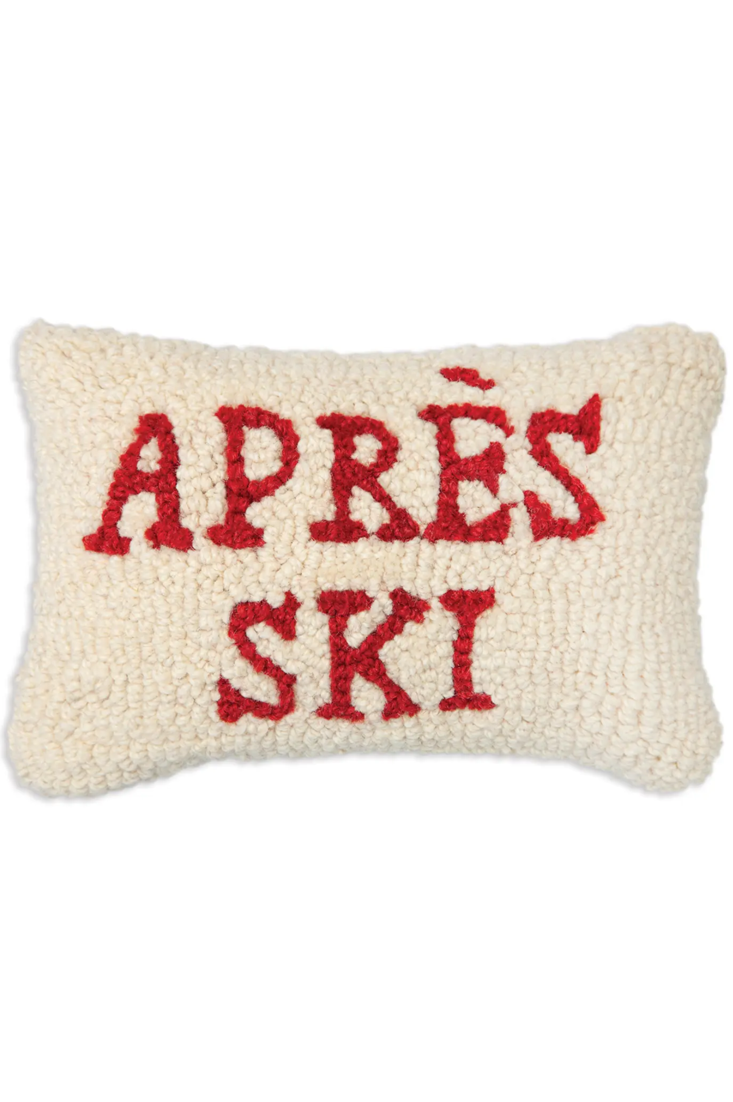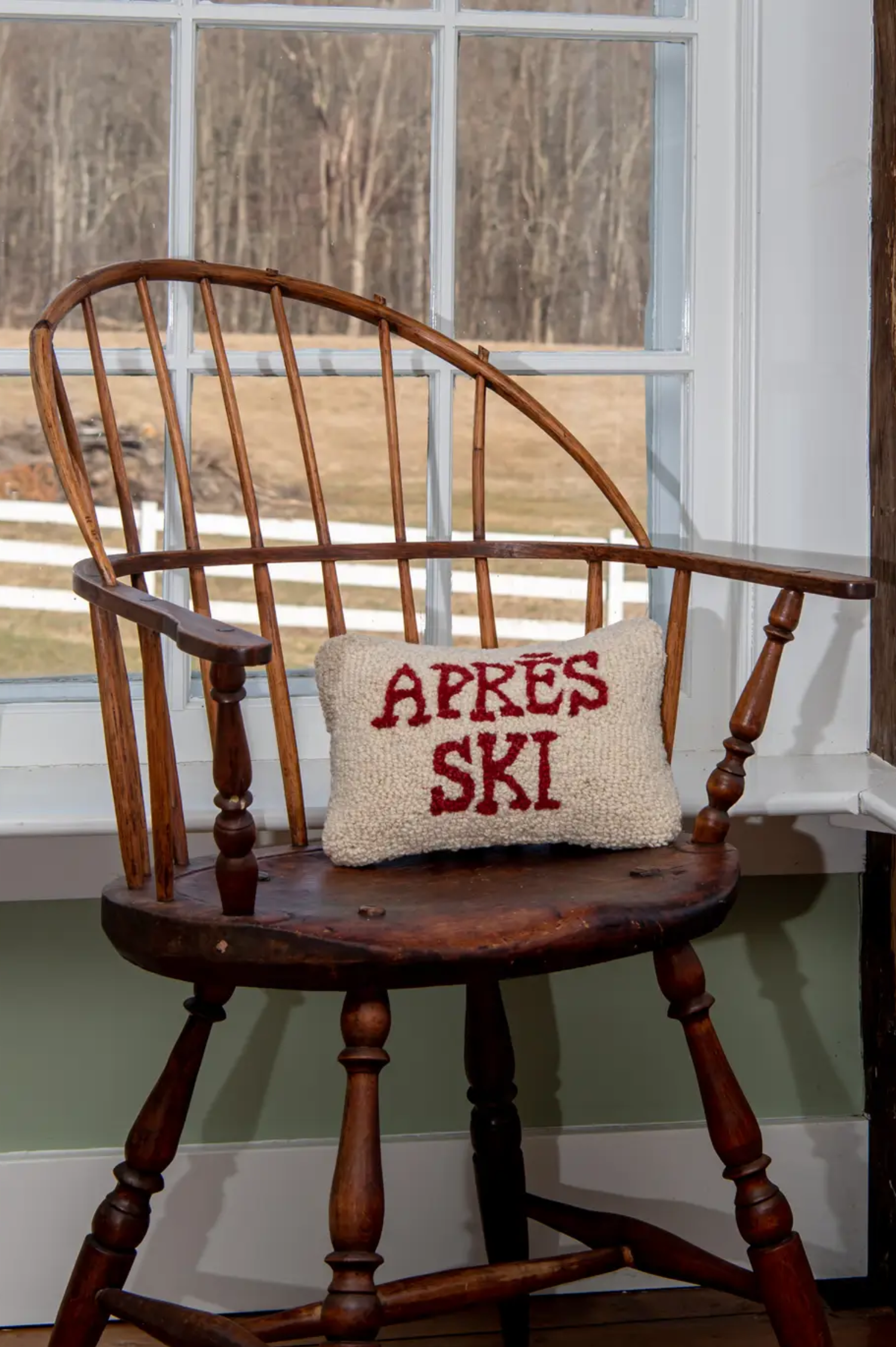 Head into the lodge for skiing's most treasured daily tradition celebrated here with our Après Ski hoked wool pillow. Our Apres Ski - 8" x 12" wool pillow has been hand-hooked with exceptional care by skilled craftsmen. The result is a premium decorative pillow that adds a charming touch of handcrafted excellence to any bed, sofa, or rocking chair.