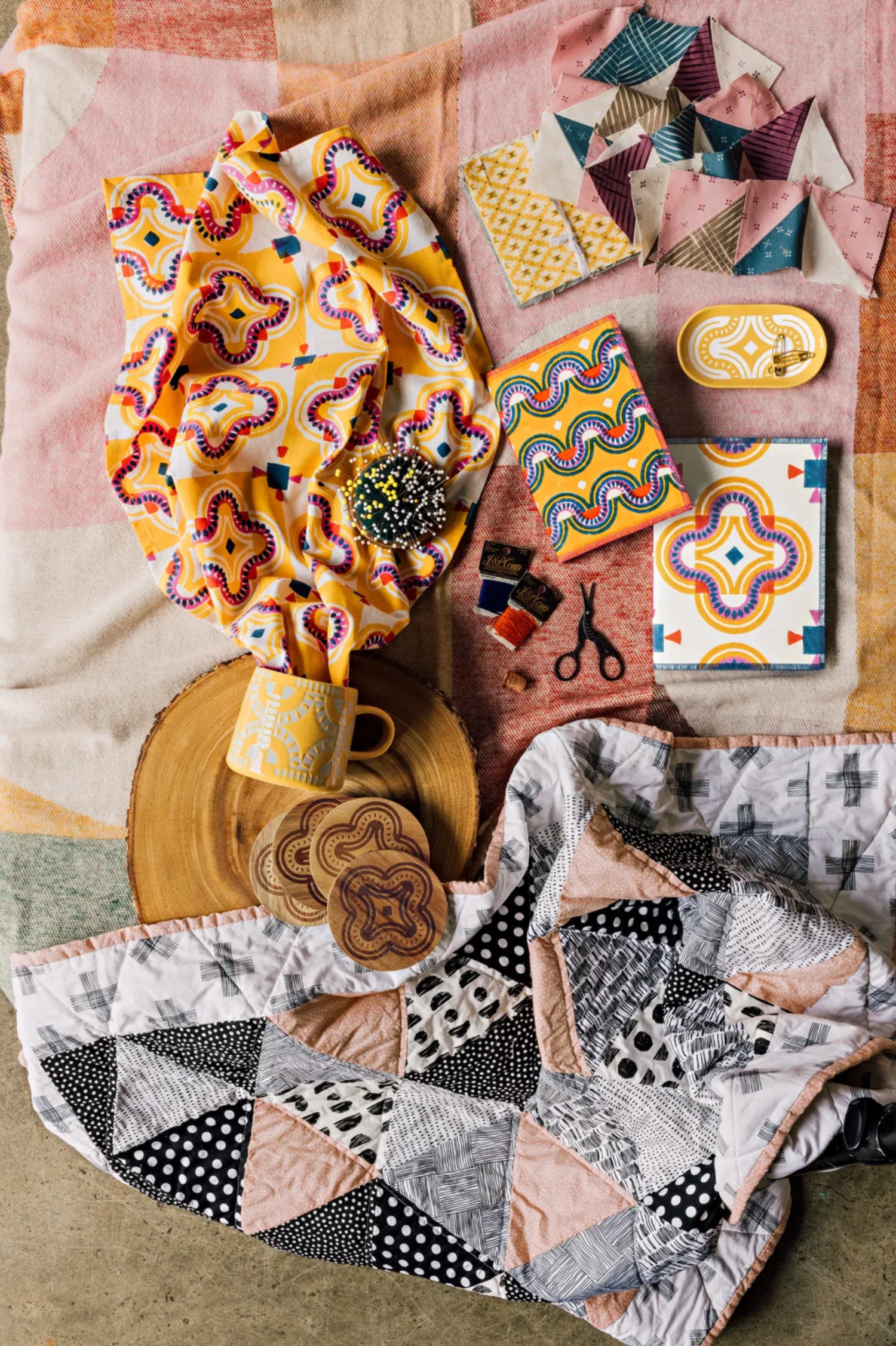 Quilt-inspired patterns pirouette across this hand-block-printed dishtowel, blending tradition with a vibrant, modern palette. Slight design variations make each piece one-of-a-kind, adding a unique, artisanal charm to your kitchen. Block-printed by hand, our custom designs come to life on these cotton dishtowels, bringing the look and feel of artisanal crafts to any kitchen.