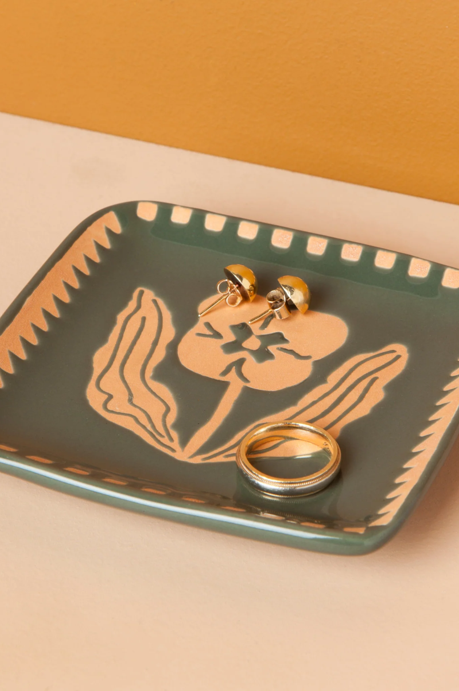 This elegant tray, with its soft squared corners, is designed to cradle your cherished trinkets in an embrace of both artistry and functionality. The tactile stoneware promises a delightful touch as you arrange your treasures.
