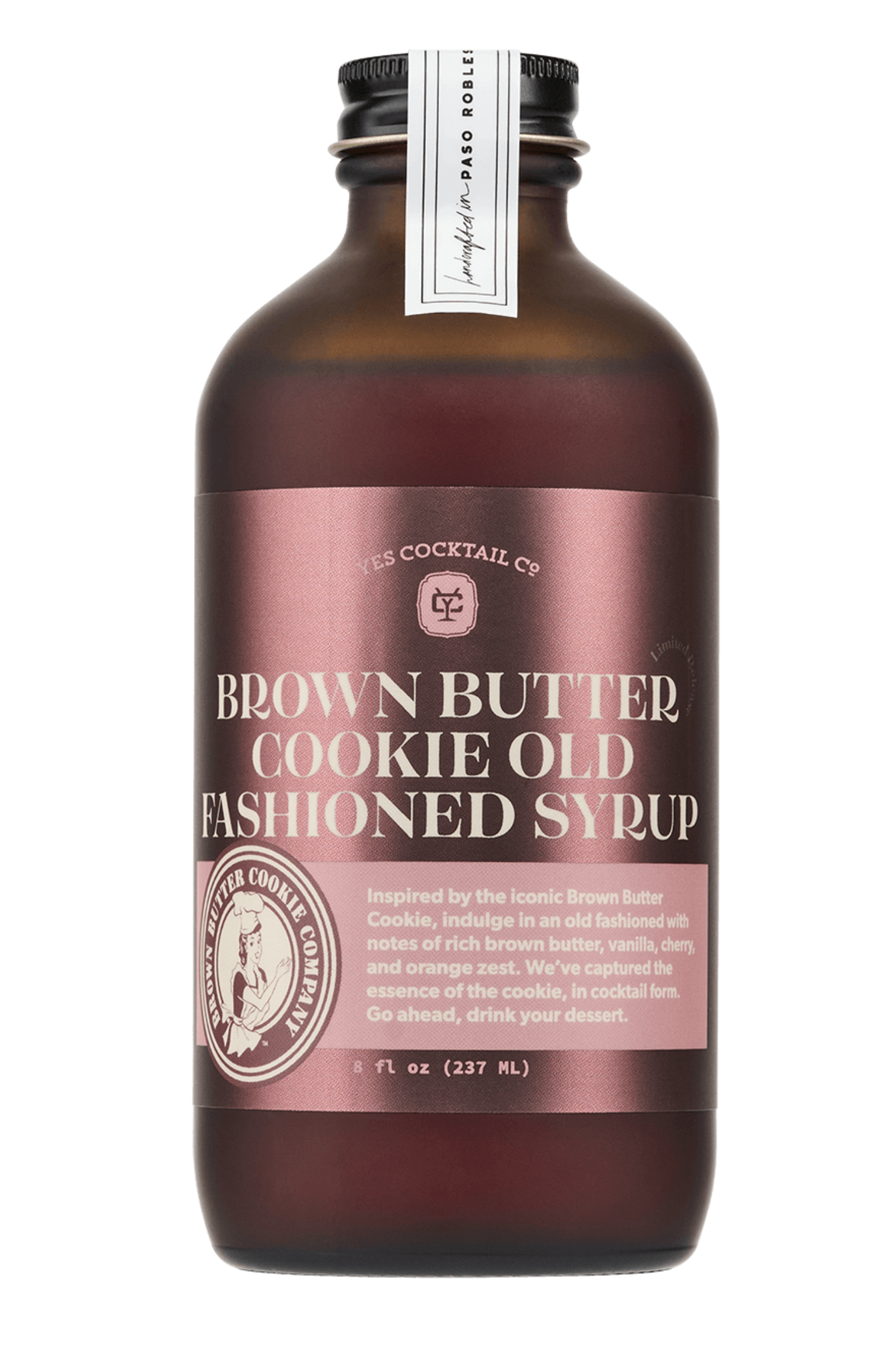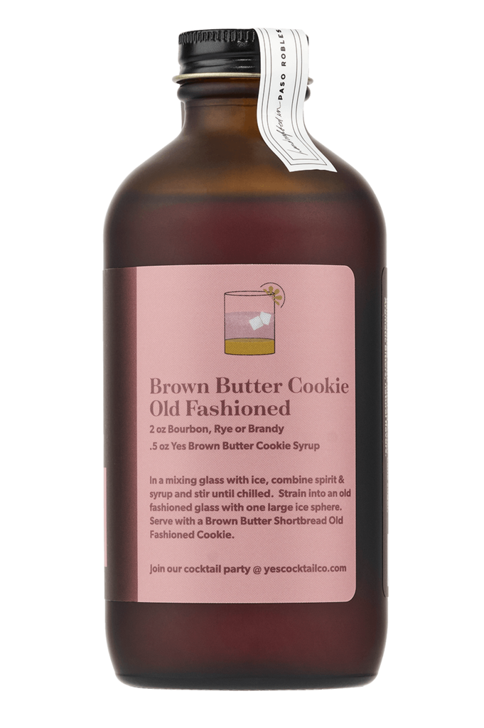 Brown Butter Cookie Old Fashioned – All-Natural Cocktail Syrup Inspired by the legendary Brown Butter Cookie from Cayucos, CA. Yes Cocktail Co.’s Brown Butter Cookie Old Fashioned Mixer captures the decadent flavor of the iconic coastal treat in cocktail form. Notes of brown butter, vanilla, tart cherry, and bright orange zest come together with our house-made bitters and expertly balanced syrup to create a rich, warming Old Fashioned base—just add bourbon.
