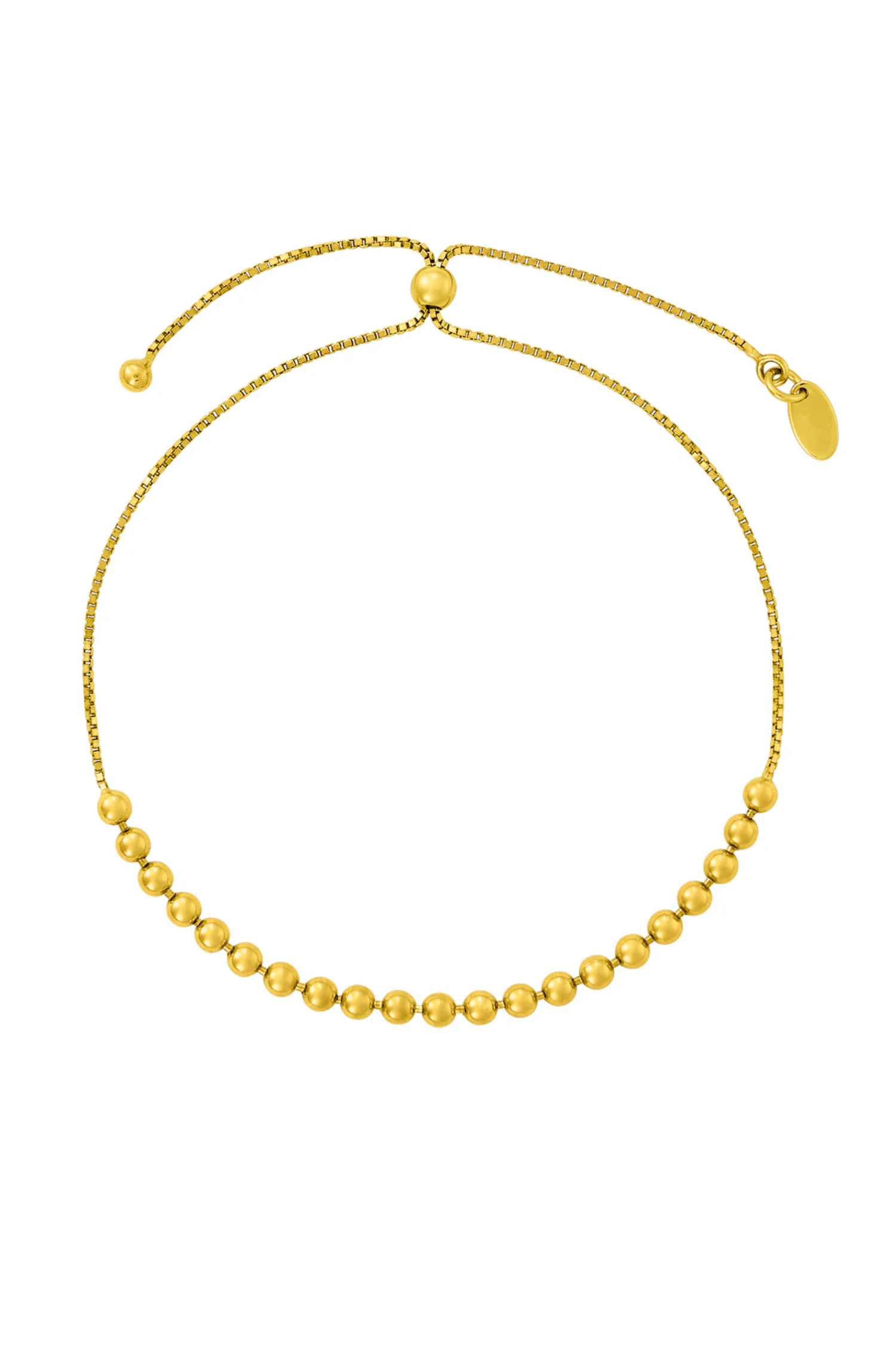 18k gold plated 925 sterling silver, adjustable pull-tie closure.