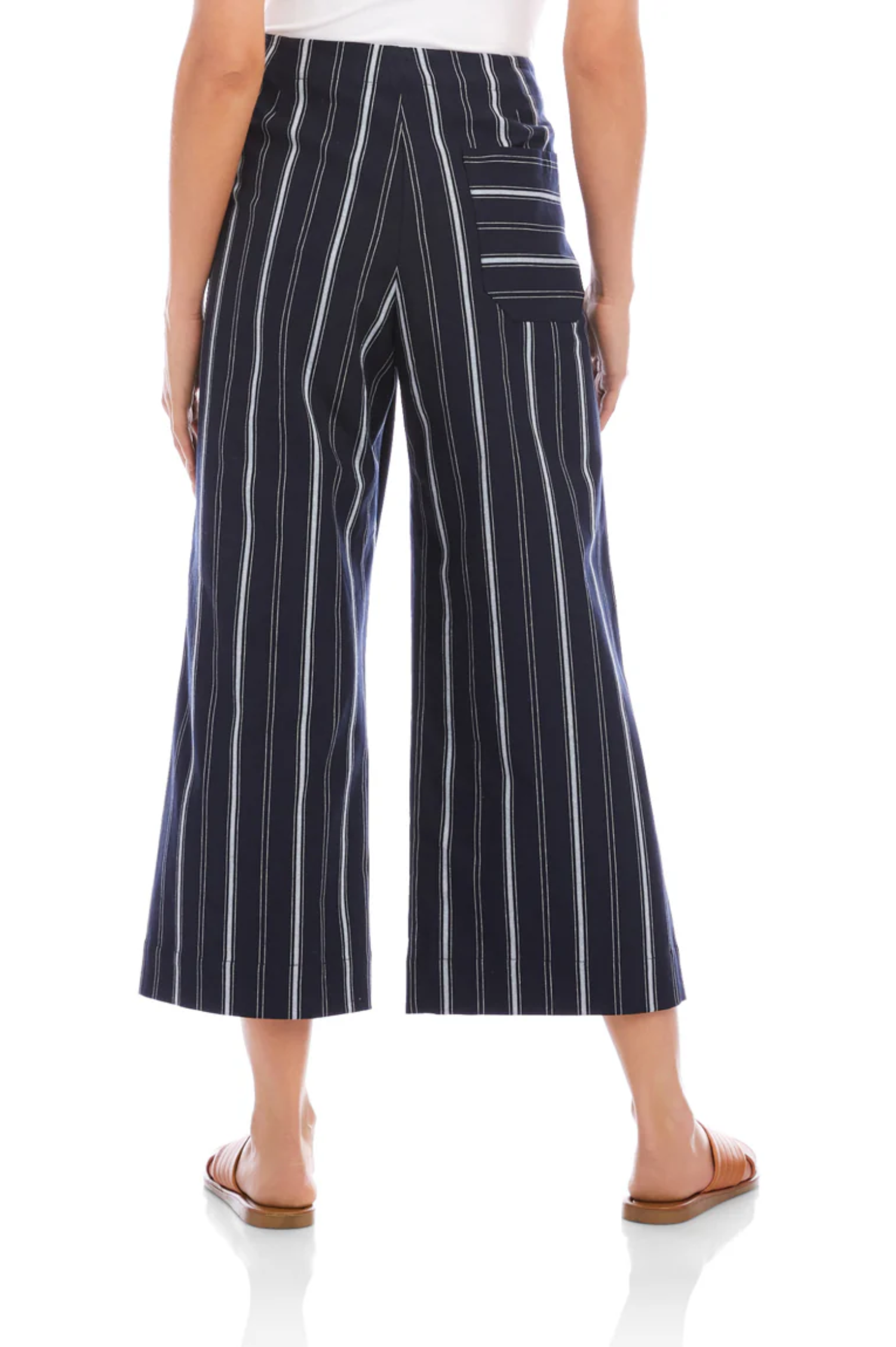 Modern cropped pants crafted in yarn-dyed dobby stripe woven fabric, featuring vertical stripe detailing and a wide-leg silhouette for a clean, elongating look. Designed with front patch pockets and an easy, comfortable fit that transitions effortlessly from casual to polished.