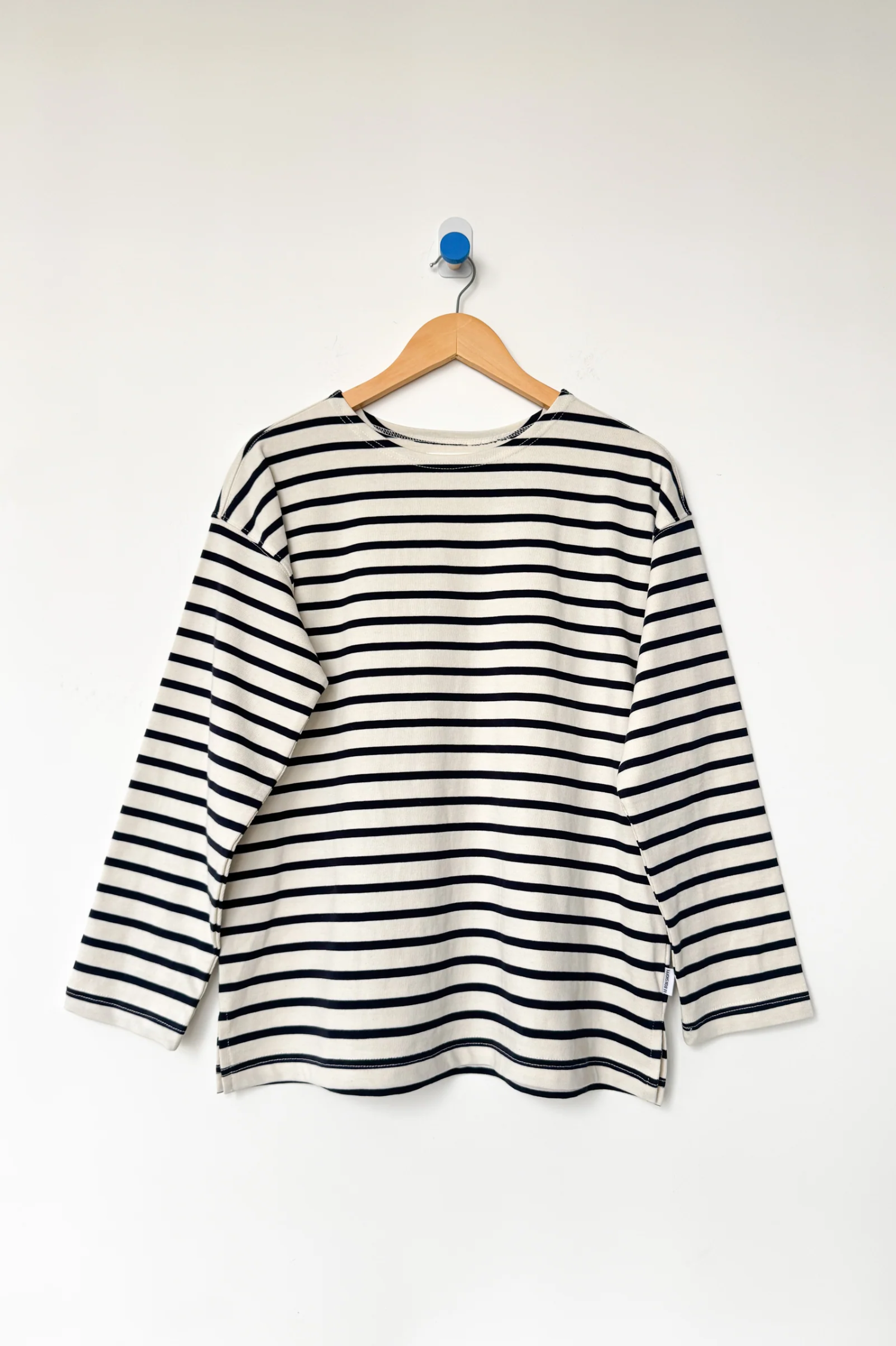 Add a touch of Parisian flair to your wardrobe. With slight updates, the Marseille Top takes inspiration from the timeless Breton stripe uniform, featuring a classic round neckline and an oversized, full-length fit that gently sweeps the hips. Small side slits allow ease of movement while maintaining the top’s effortless shape. Crafted from durable, heavyweight cotton, it offers structure without sacrificing softness, making it an ideal choice for both elevated and casual looks.