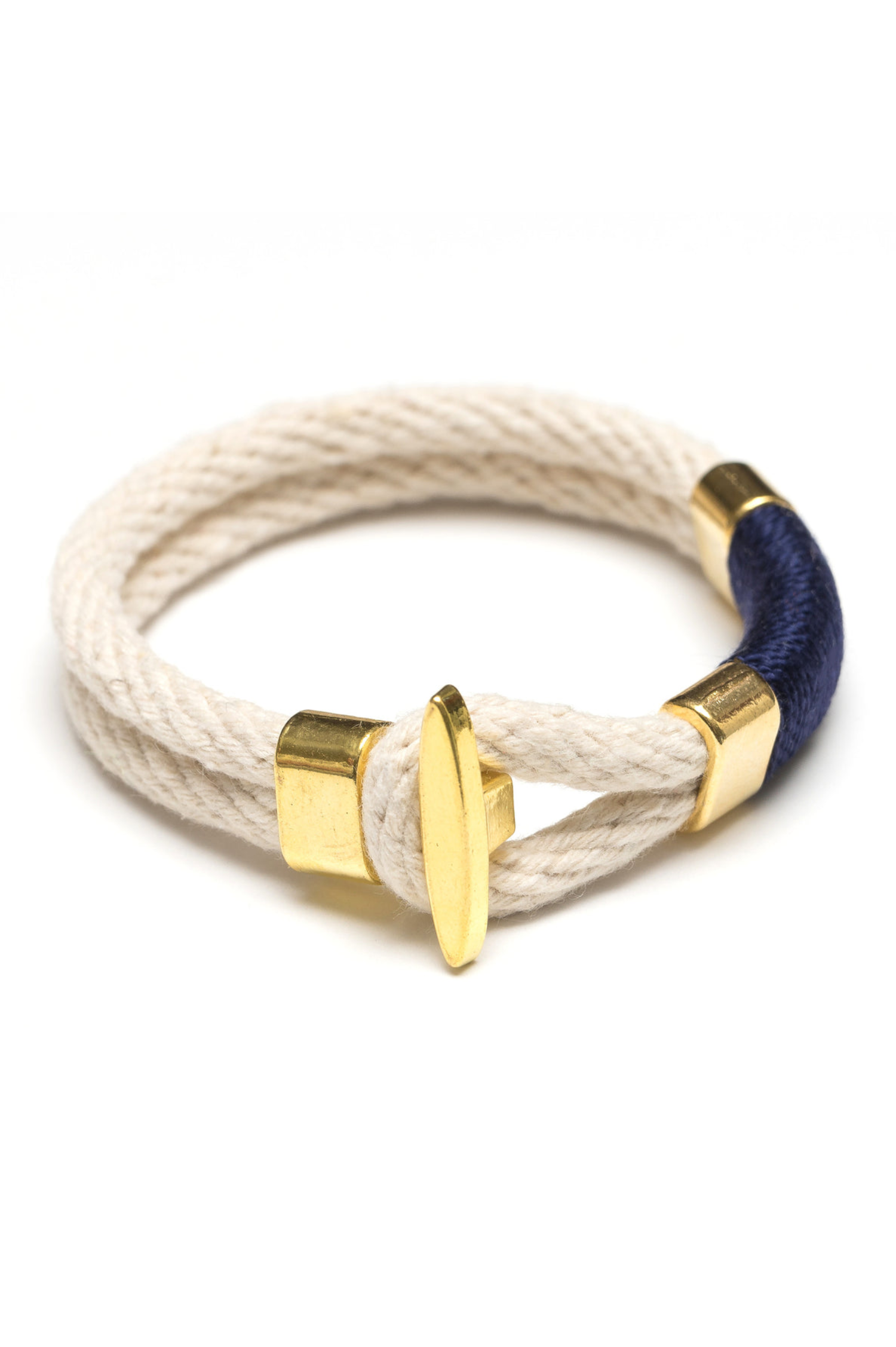 Allison Cole Jewelry Cambridge Nautical Rope Bracelet - Ivory/Navy/Gold / S is backordered and will ship as soon as it is back in stock.