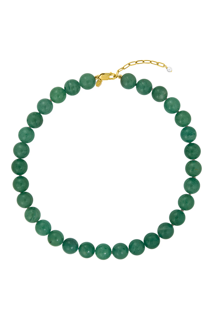 Hand-knotted with 12mm faceted semi-precious stone beads and finished with an 18k gold plated sterling silver clasp. Adjustable 16-18" length.
