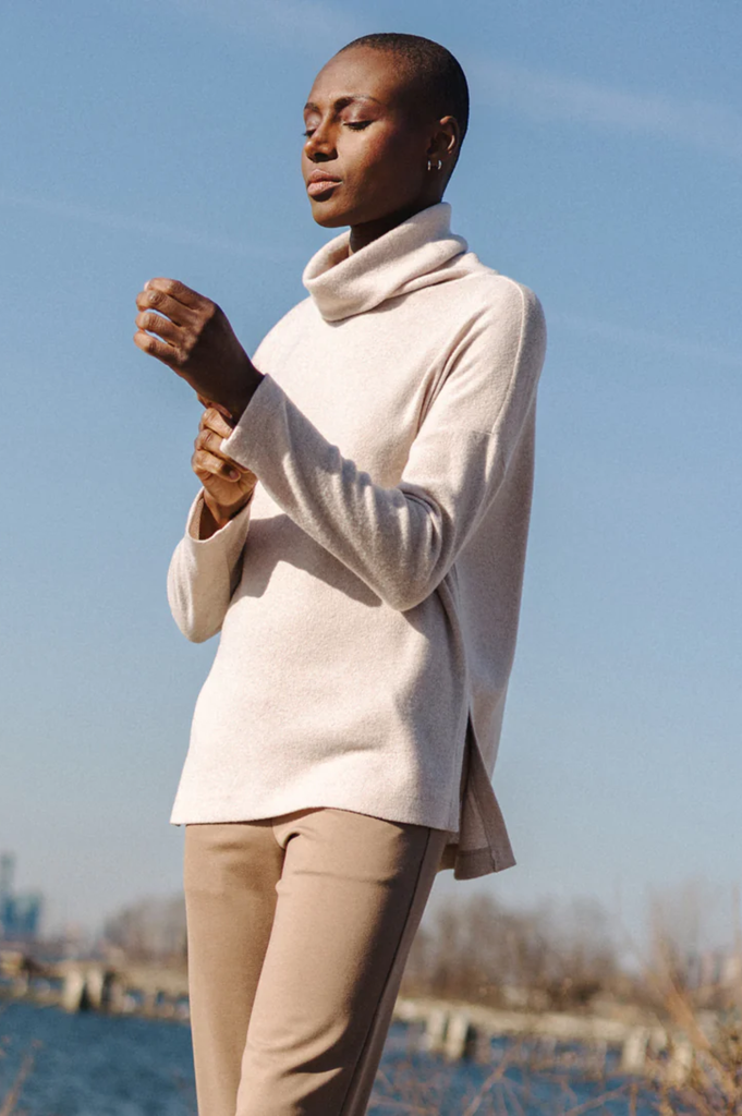 Clara Sunwoo Faux Cashmere Tunic Turtleneck Sweater - Natural / XS is backordered and will ship as soon as it is back in stock.