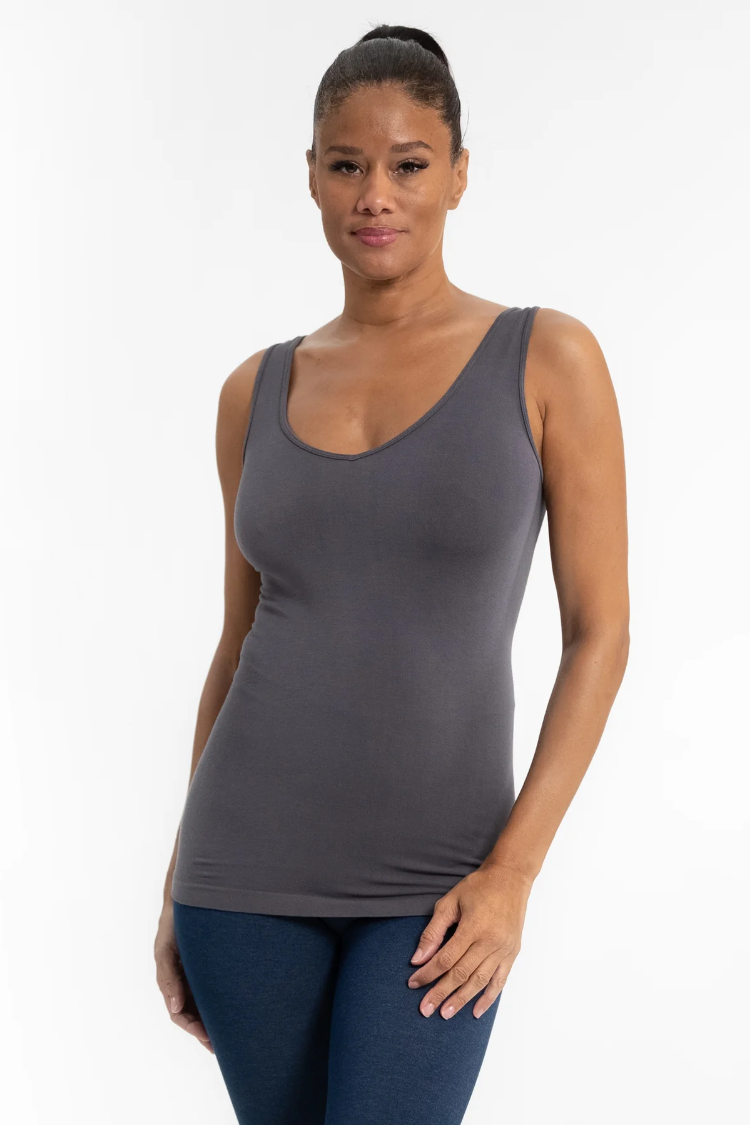 Our Reversible Tank is perfect for when you need styling versatility without sacrificing comfort. Its super soft, stretchy fabric is gentle on your skin and its fast-drying properties make it the perfect base layer for any outfit. With the ability to switch between V-neck and scoop neck, you can always stay one step ahead of the curve.
