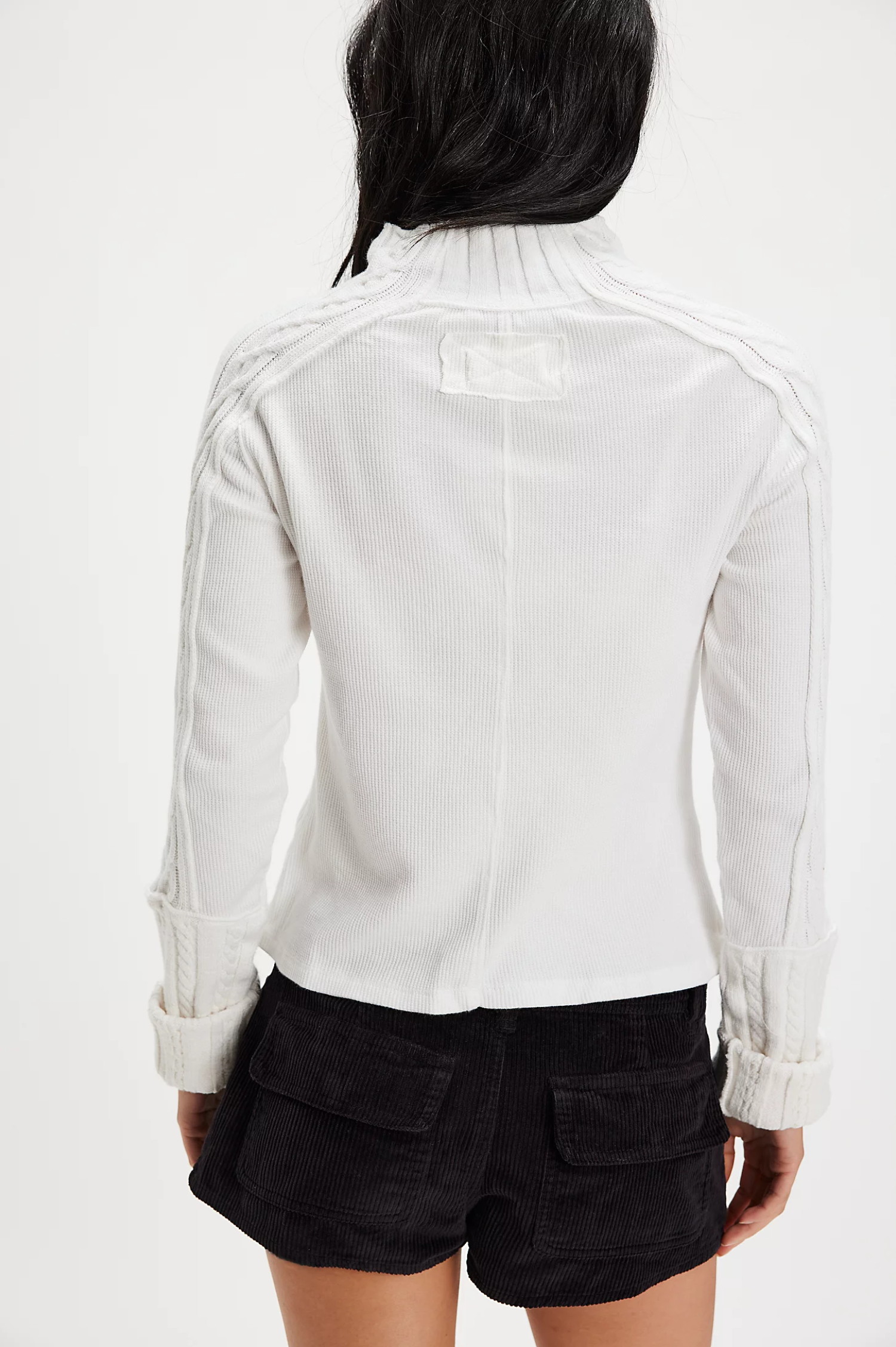 The ultimate cozy option, this sweater from We The Free features all of our favorite fabrications like cable-knit trims and a comfy waffle base.