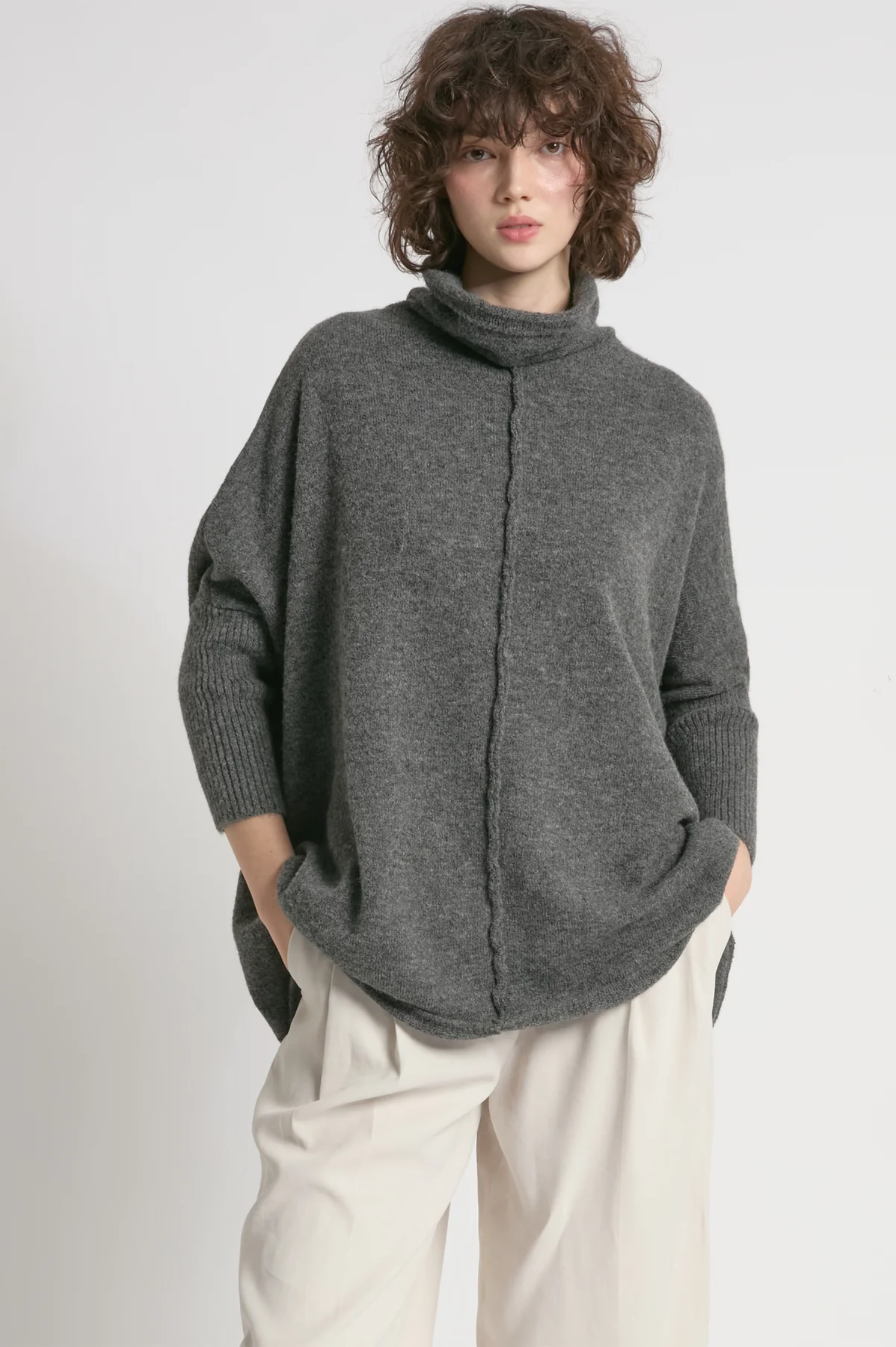 Look By M Seam Turtleneck Sweater - Charcoal / One Size is backordered and will ship as soon as it is back in stock.