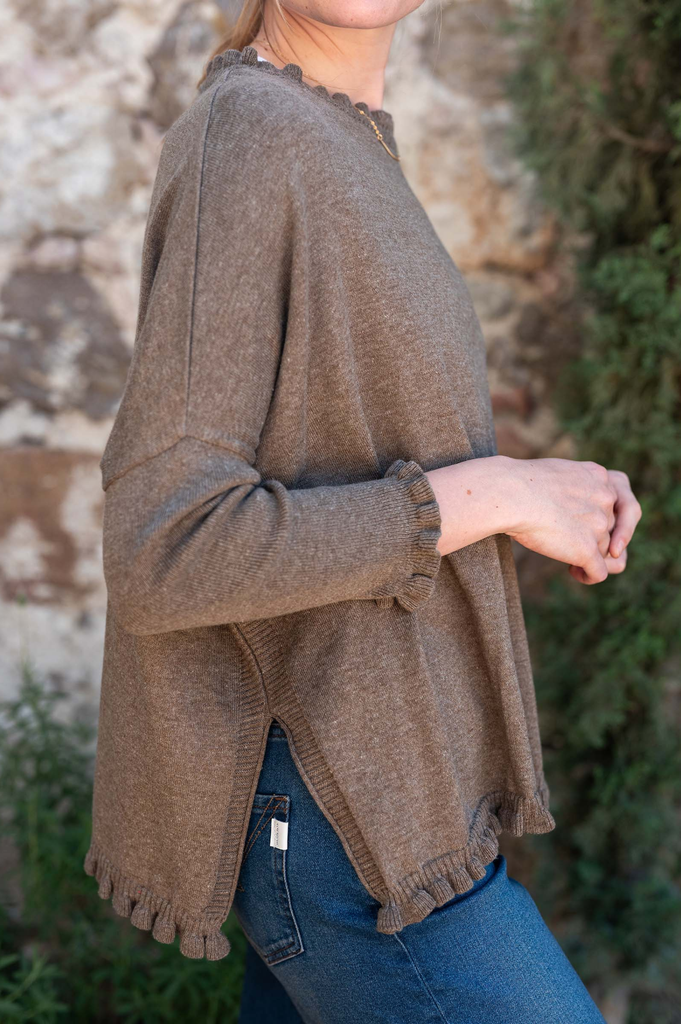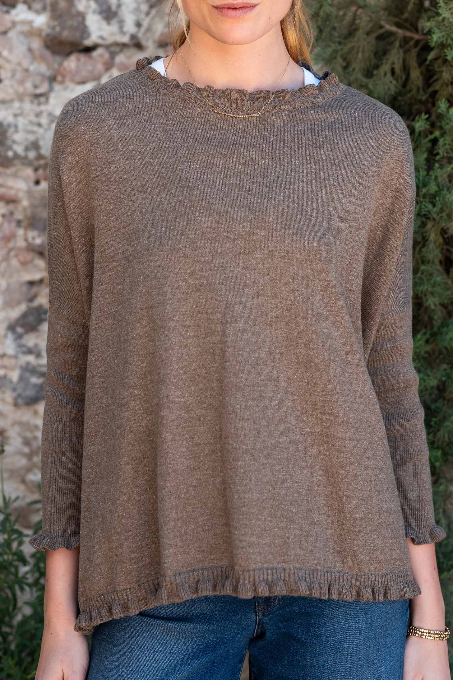 Mersea Catalina Cotton Ruffle Sweater - Taupe / One size is backordered and will ship as soon as it is back in stock.
