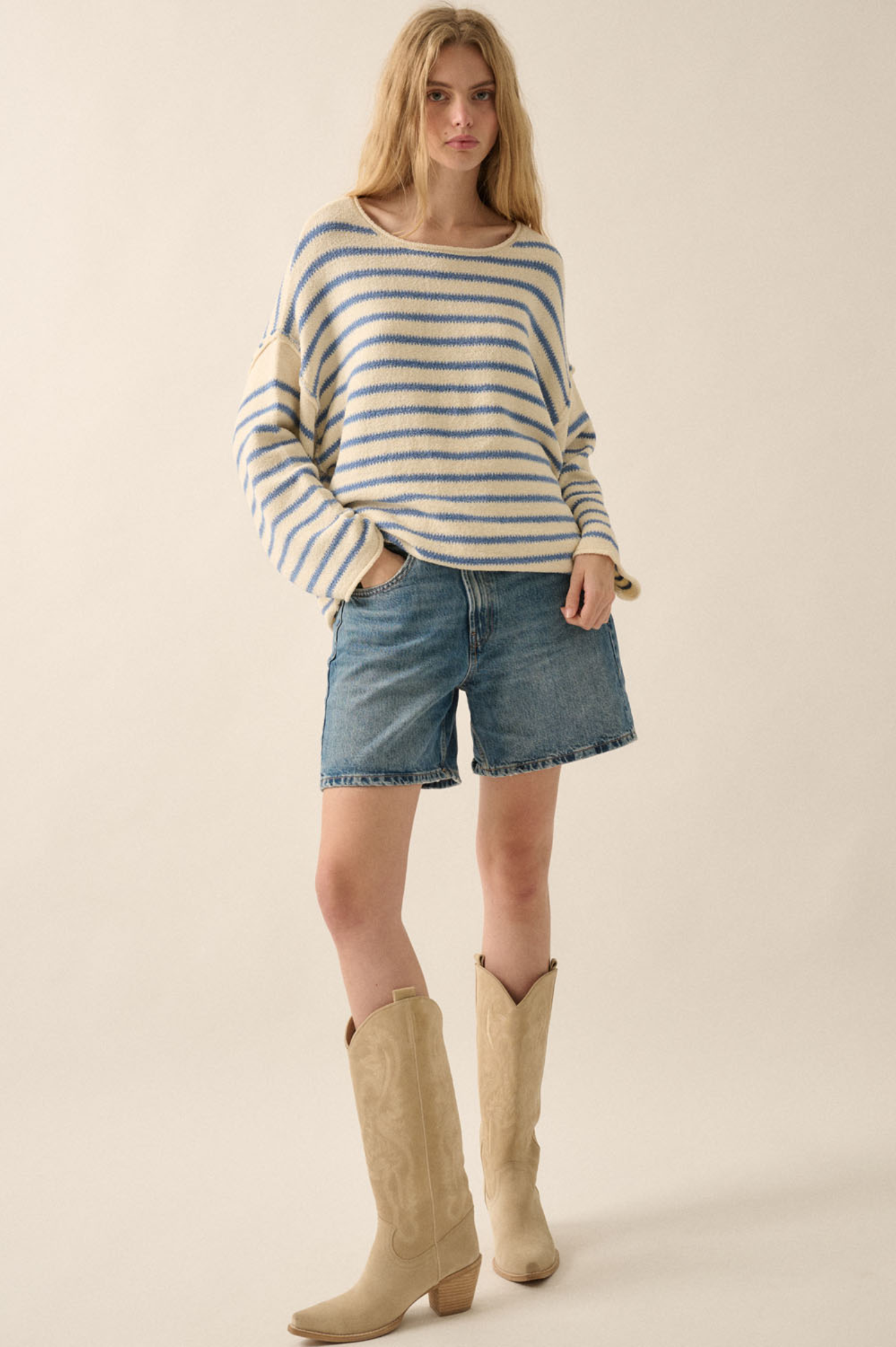Promesa Striped Knit Oversized Sweater - Cream/Blue / S is backordered and will ship as soon as it is back in stock.