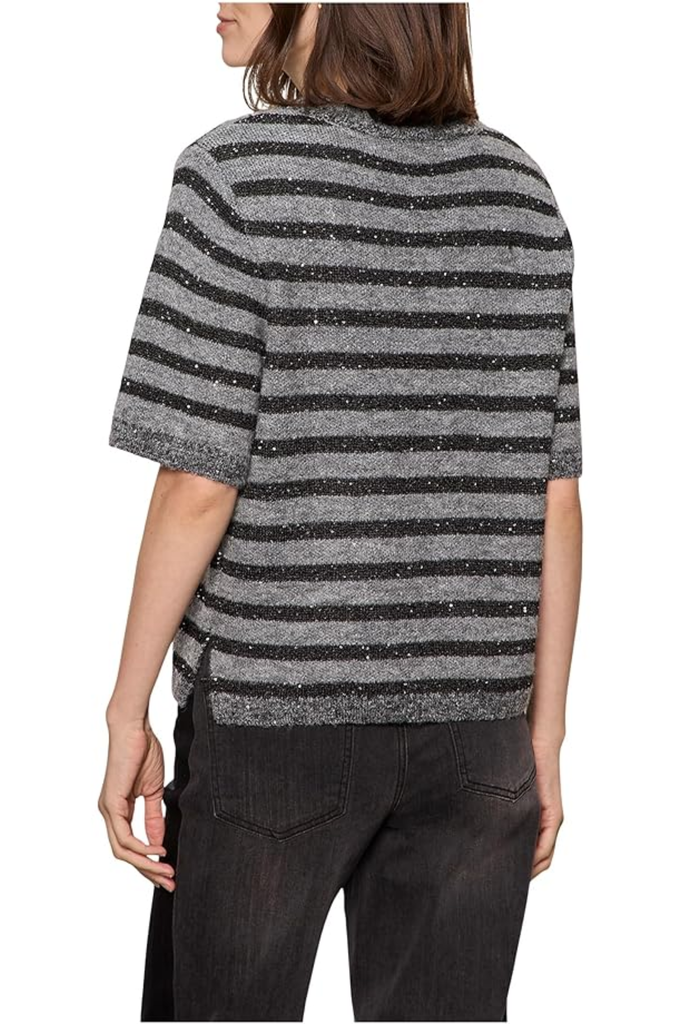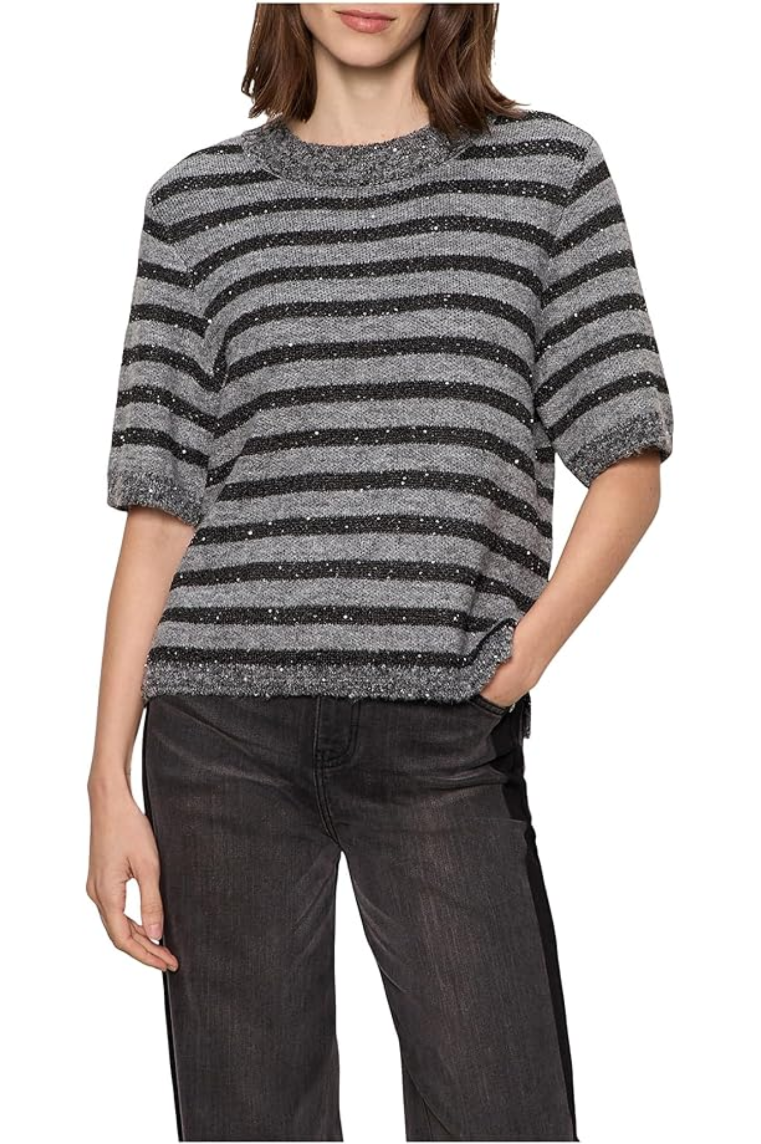 Sparkle and shine in this short-sleeve sequin sweater tee. Featuring a crew neck, ribbed cuffs, and easy pull-on style—perfect for holiday parties and New Year's celebrations.