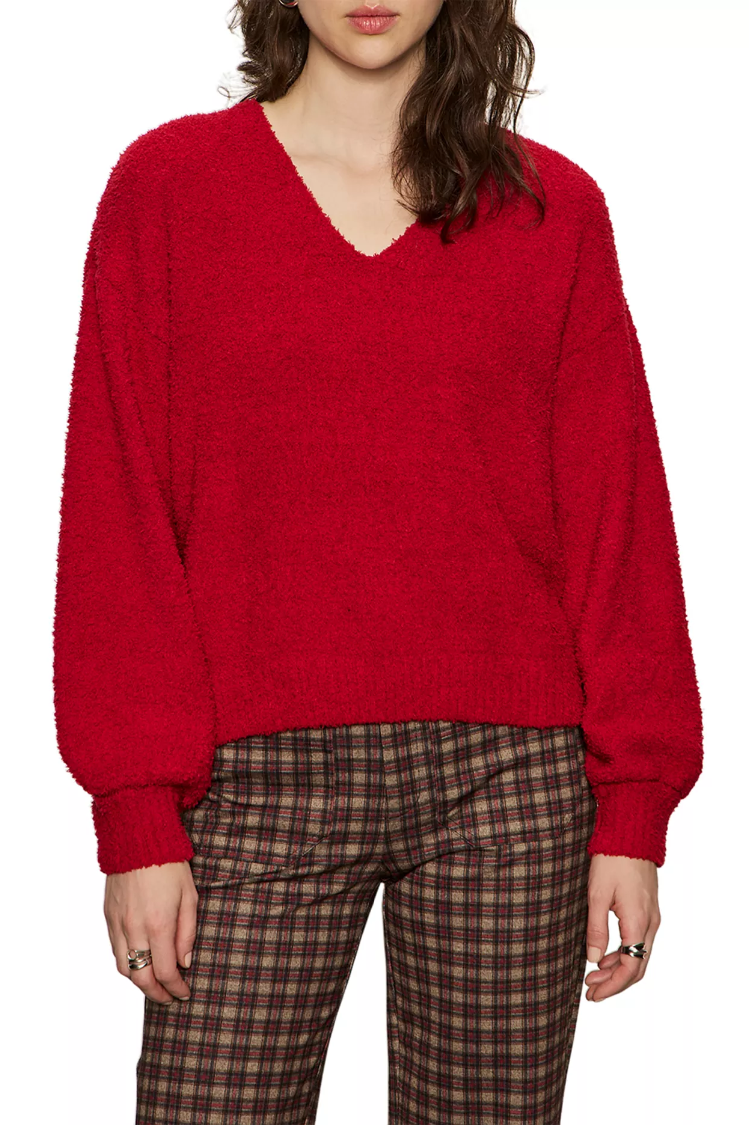 Sanctuary Teddy V-Neck Sweater - Cherry / XS is backordered and will ship as soon as it is back in stock.