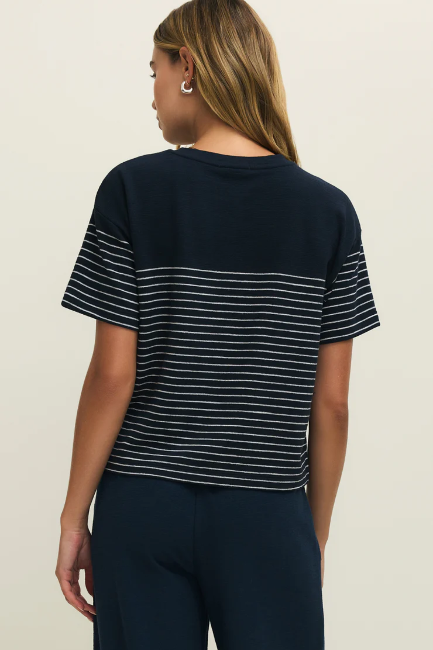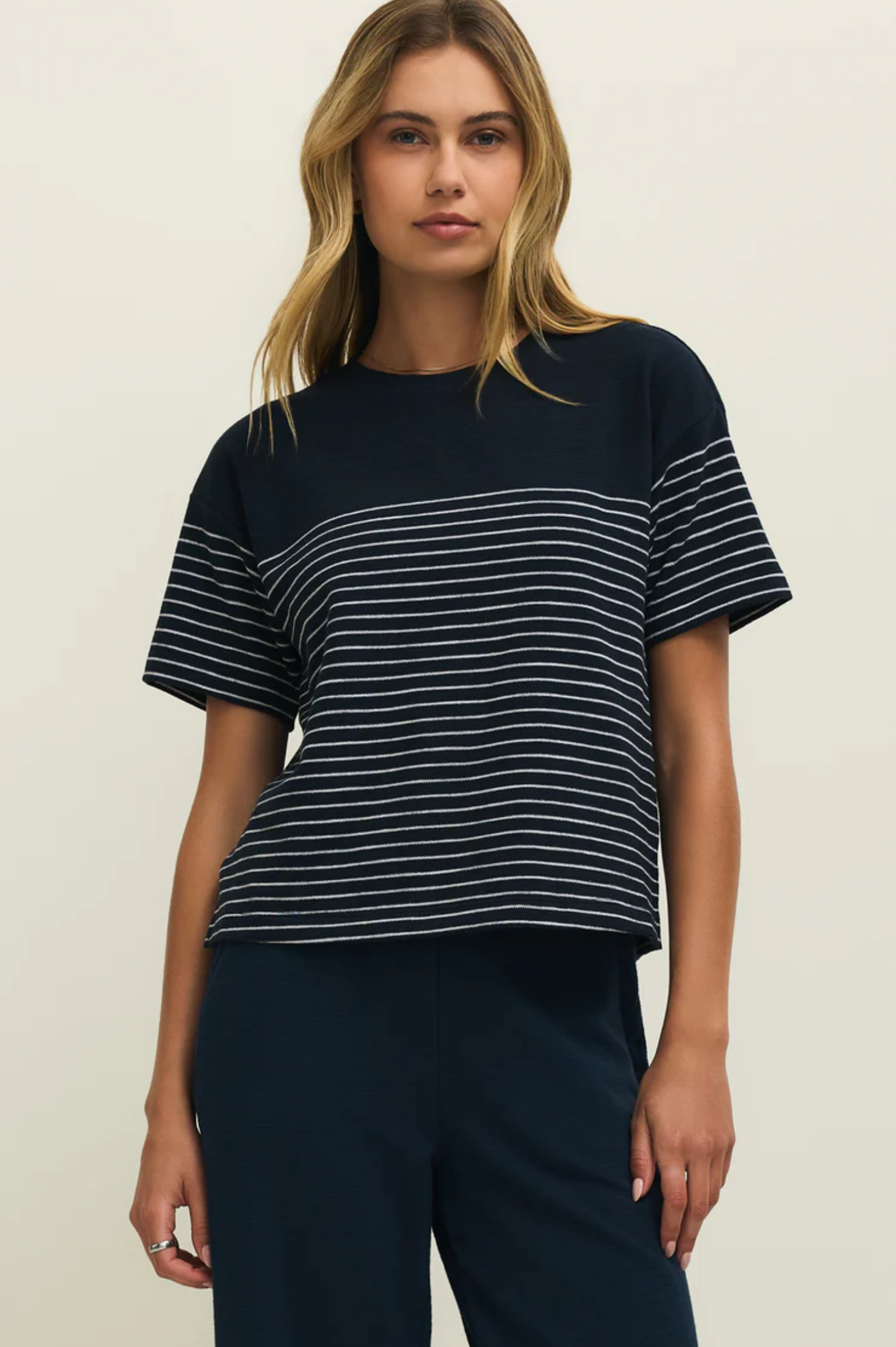 This striped top features a textured knit blend in a relaxed silhouette. Pair with the Andre Wide Leg Pant for your most comfortable outfit yet.