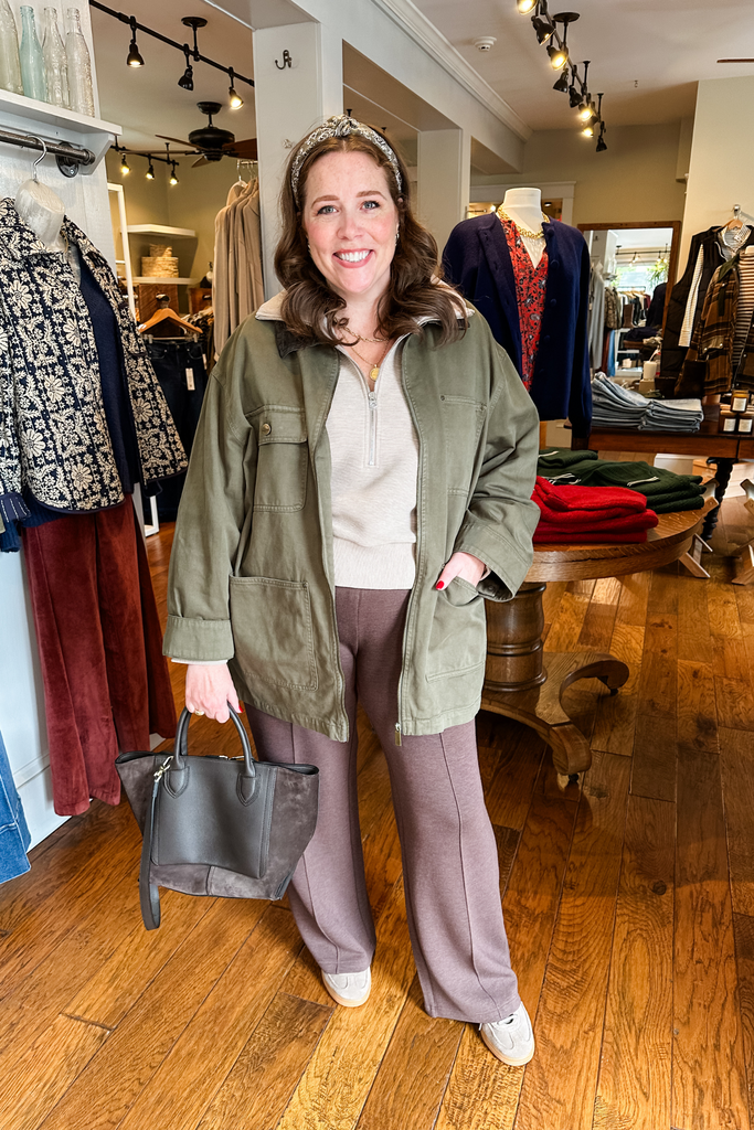 Experience timeless style with the Sanctuary Barn Jacket. Featuring a classic fit, four functional pockets, and a zippered front, it blends practicality with refined design. The collar's contrasting corduroy trim adds a subtle, elegant touch, while lightweight fabric ensures comfortable wear in cooler seasons.