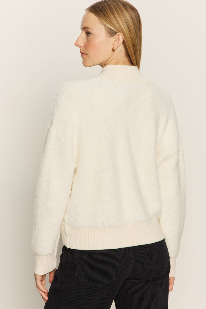 Embrace the crisp fall air with the Sanctuary Boucle Sweater, a cozy full-zip essential crafted for effortless layering. Its soft boucle texture adds refined warmth and depth, making it perfect for cooler days. Pair it with tailored trousers or your favorite jeans for a sophisticated, polished look that transitions seamlessly from casual outings to chic gatherings. This sweater combines comfort and style, elevating your fall wardrobe with understated elegance.
