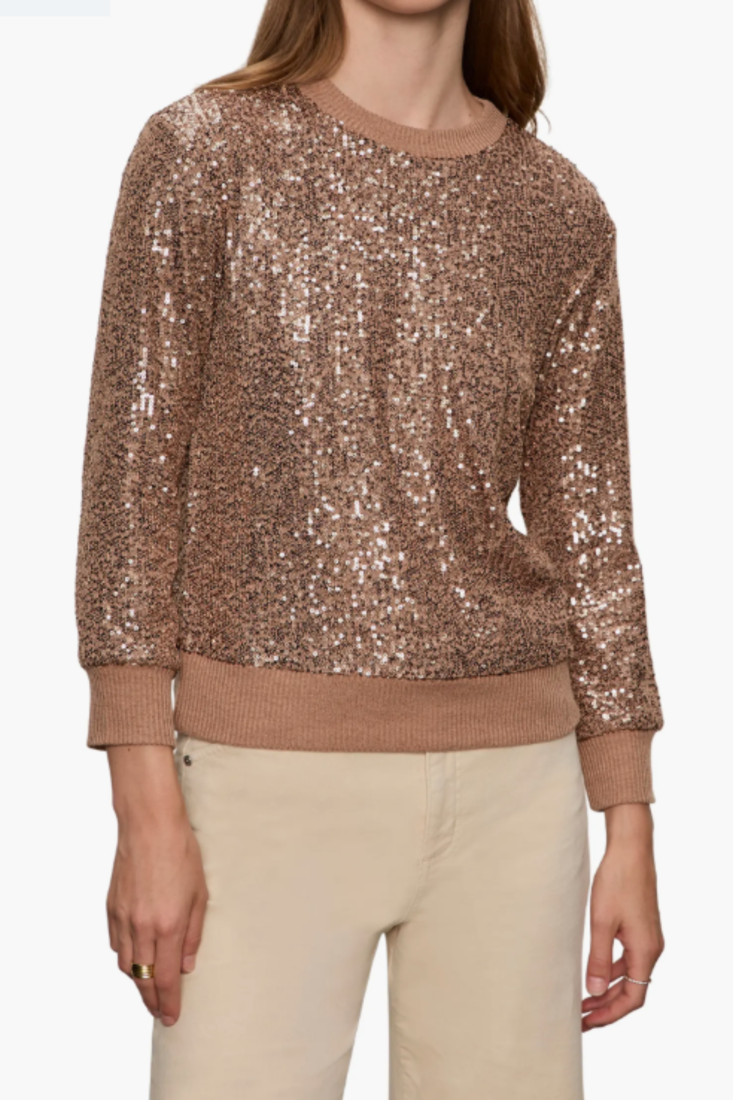 Elevate your wardrobe with the Sanctuary Relaxed Sparkle Popover, featuring shimmering sequins for a refined touch of glamour. This long-sleeve top offers a crew neck and ribbed hemline and cuffs, ensuring a polished silhouette. Its relaxed fit and pull-on style combine comfort with effortless elegance, perfect for day-to-night wear.