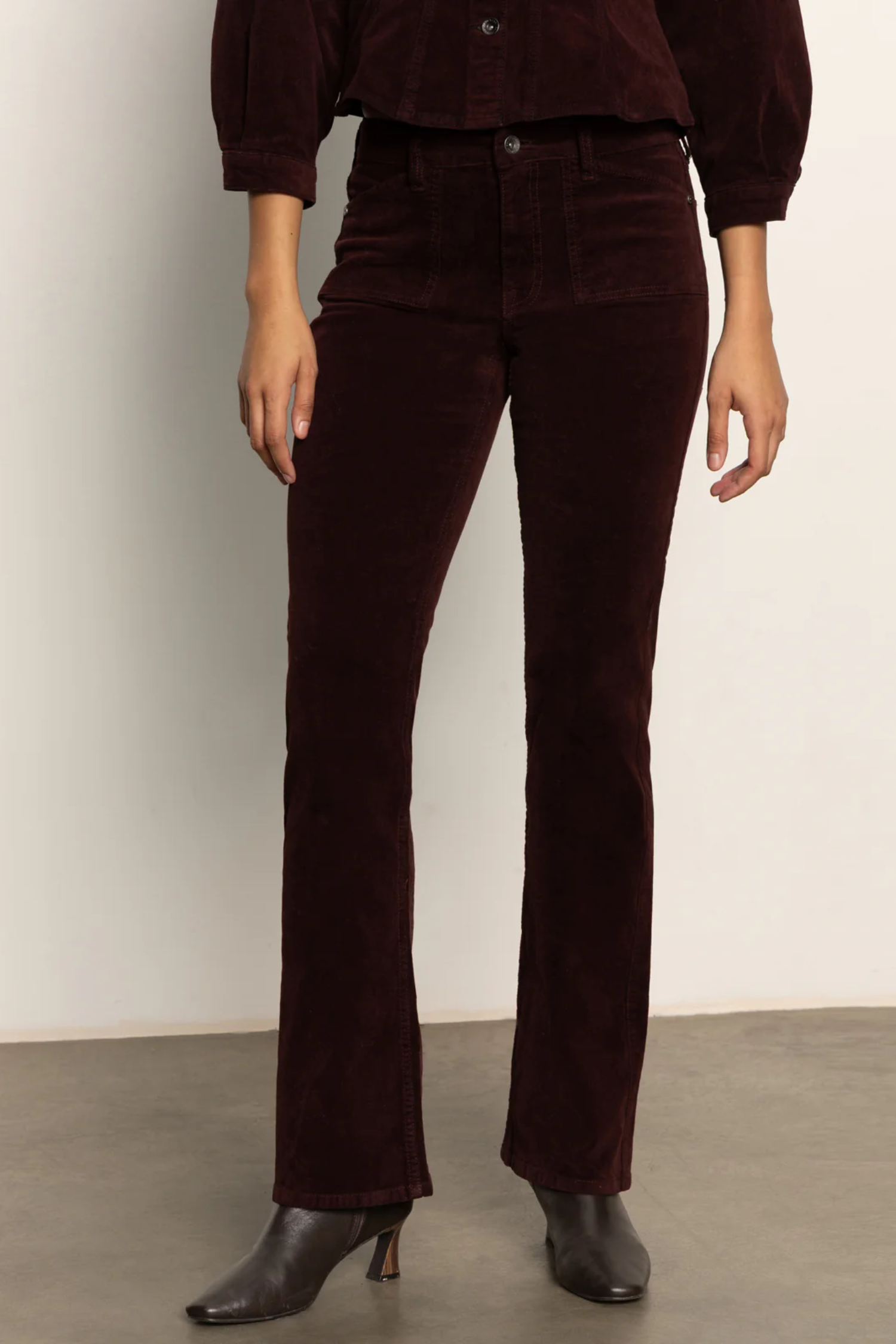 Step into fall with the Sanctuary Velveteen Brook Bootcut Pants in a rich dark crimson shade. These stylish bootcut pants flaunt a flattering silhouette that pairs perfectly with pointy-toe boots, giving you that effortlessly chic vibe. Cozy, cool, and made for turning heads during sweater weather!