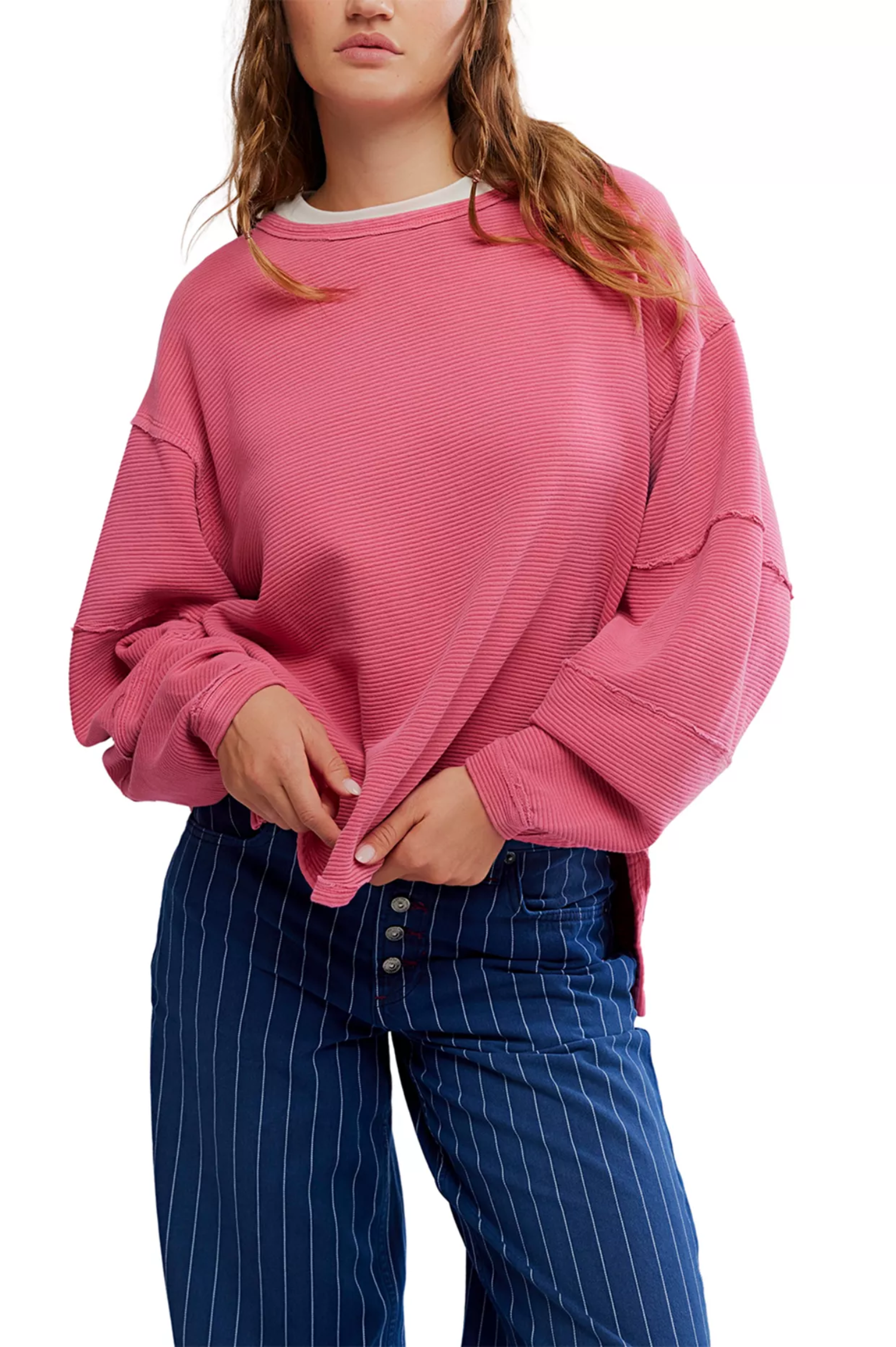 An elevated take on the classic tee, this long-sleeve from our We The Free collection features a ribbed fabrication and slouchy silhouette with defined seams and a scoop-neckline.