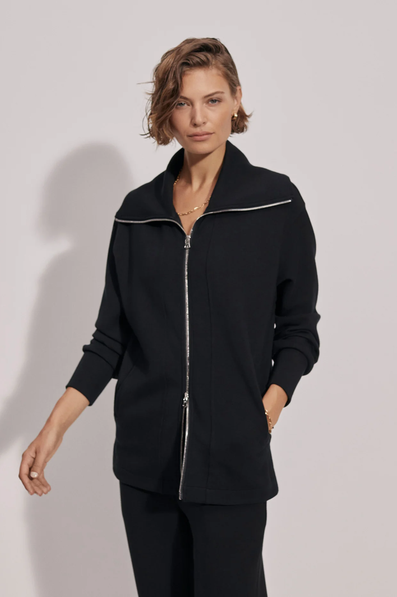 Made from our signature DoubleSoft™ fabric, this zip-through sweatshirt boasts an exaggerated collar and double-ended zip for a modern touch. It’s the perfect throw-on-and-go piece for travel, lounging, or casual outings, offering a relaxed, longline fit.