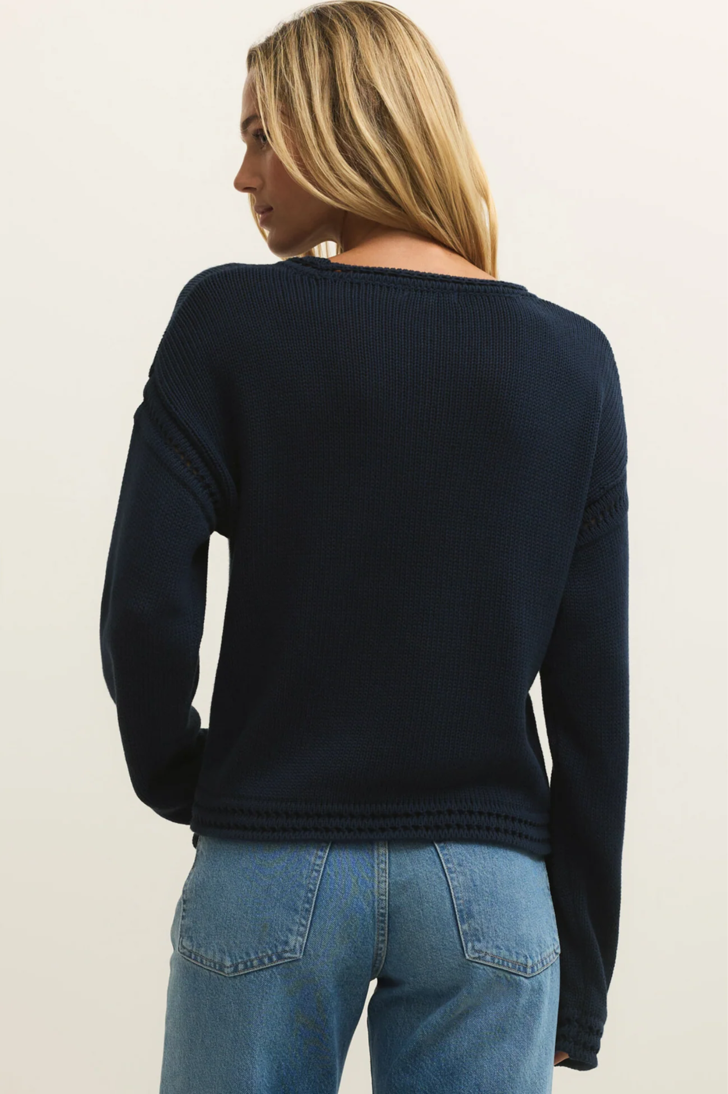 This sweater is the perfect blend of comfort and chic with its classic crew and pointelle trim.