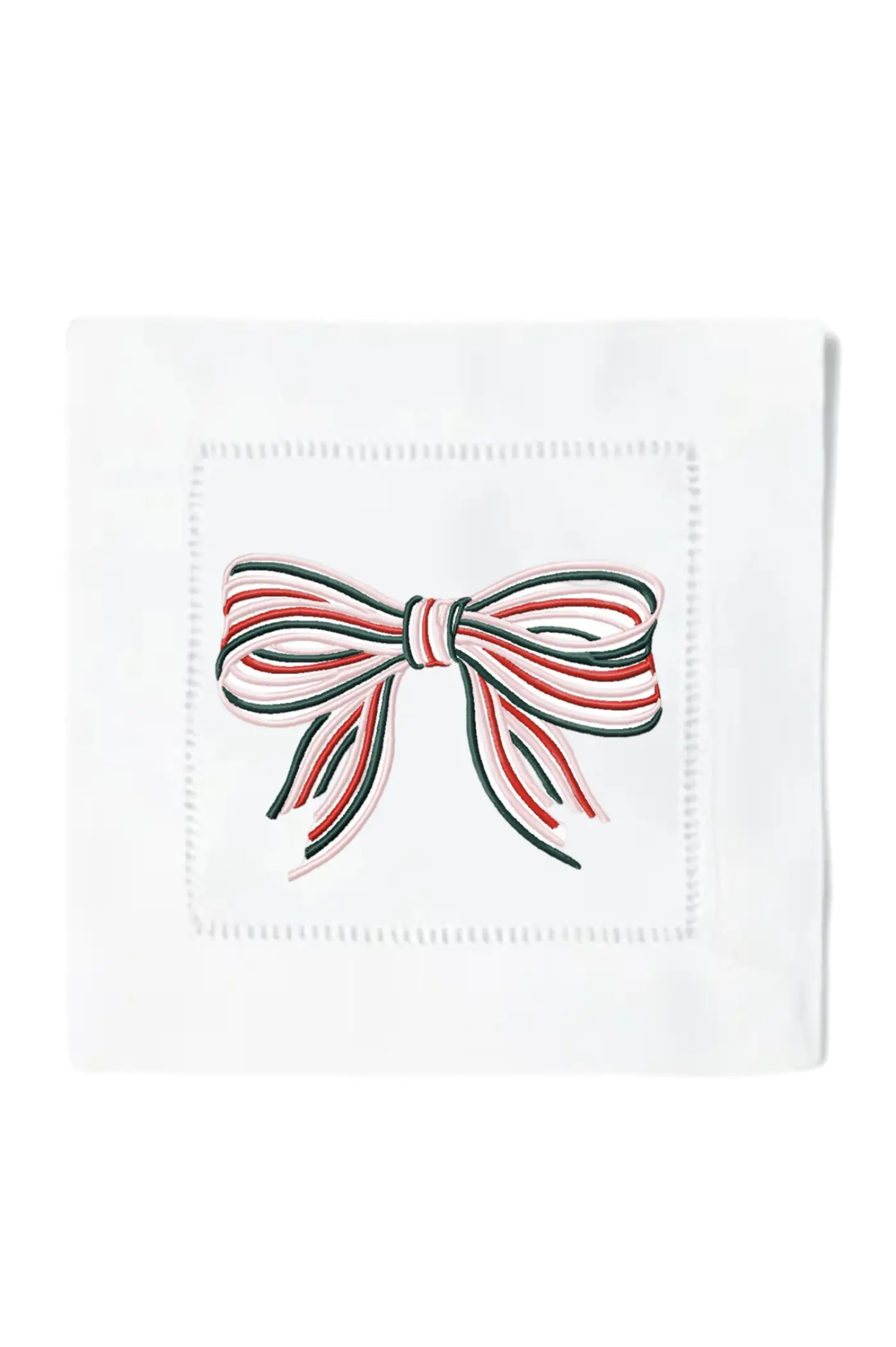 Blythe Embroidery Co. Striped Christmas Bow Cocktail Napkins