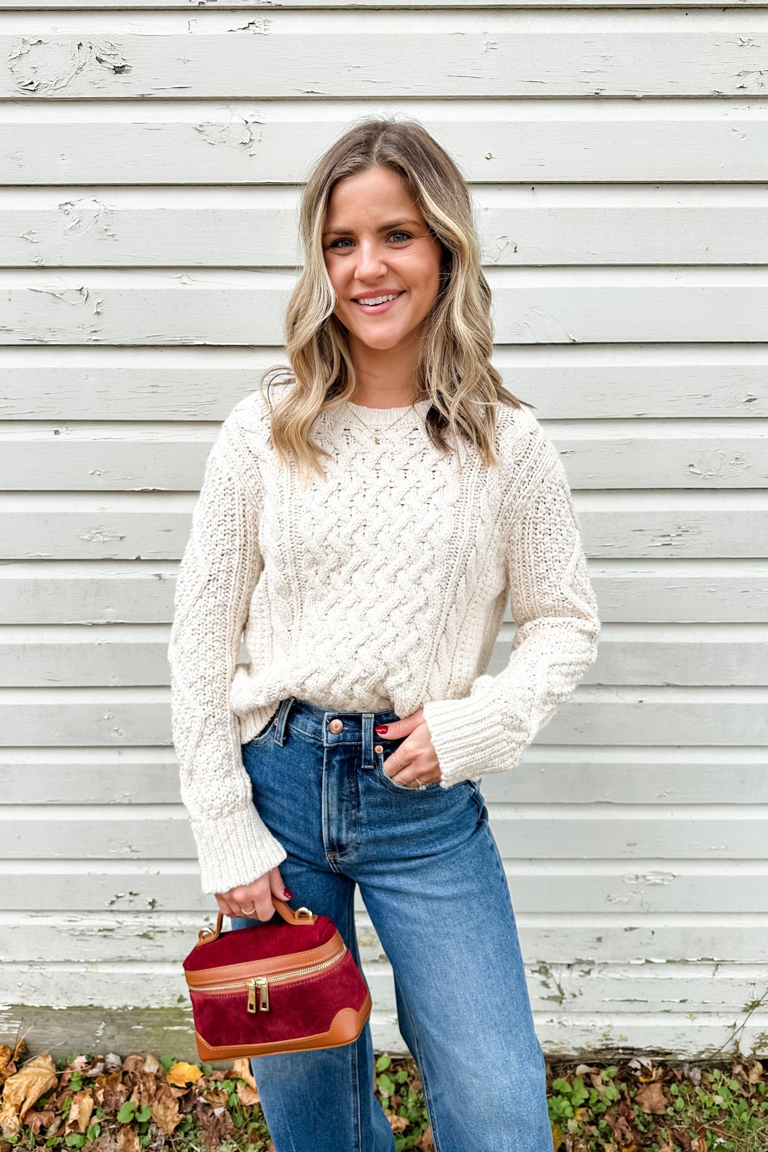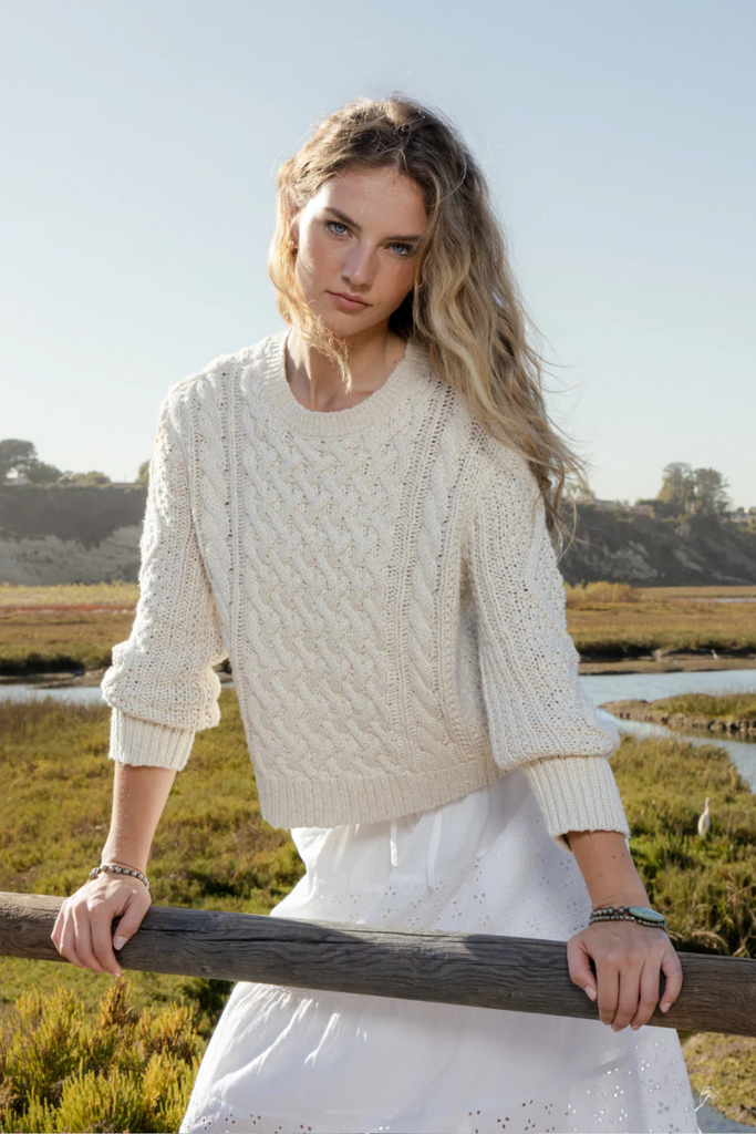 The Dylan Charlotte Cable Crewneck is a cozy, stylish sweater that’s perfect for layering. Pair it with a skirt for a fun, feminine look anytime.