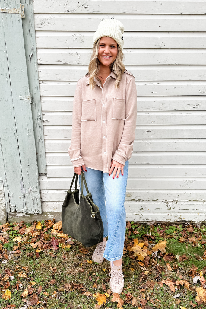 The Dylan Cozy Boyfriend Shirt is soft and easy to style. Wear it with jeans and a tank for a comfy, casual look you’ll love.