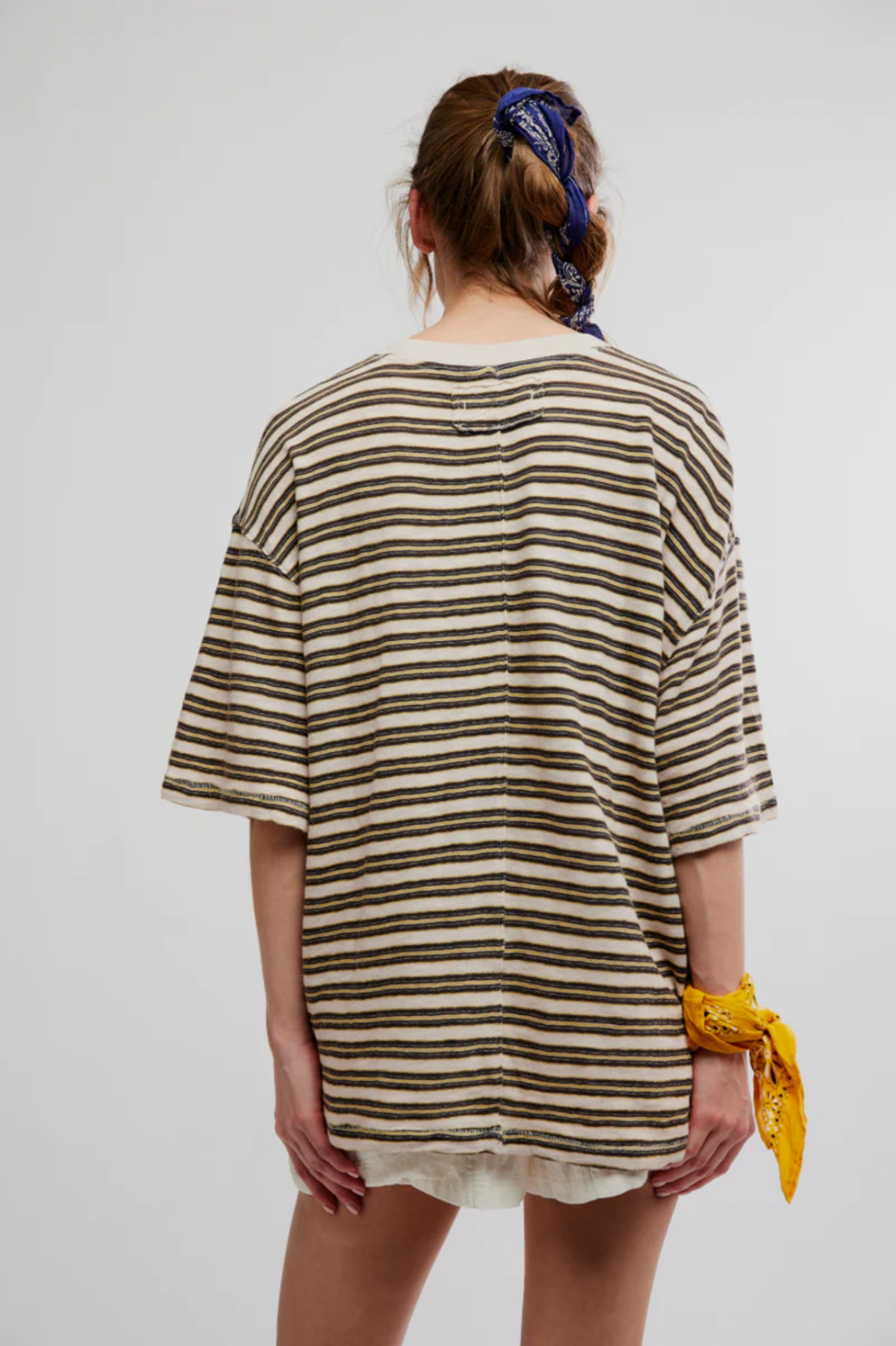 Sporty, retro, comfy–we’re bringing all of our favorite vibes into one tee with this staple, featured in a relaxed fit with a fun striped print and extra wide short sleeves.