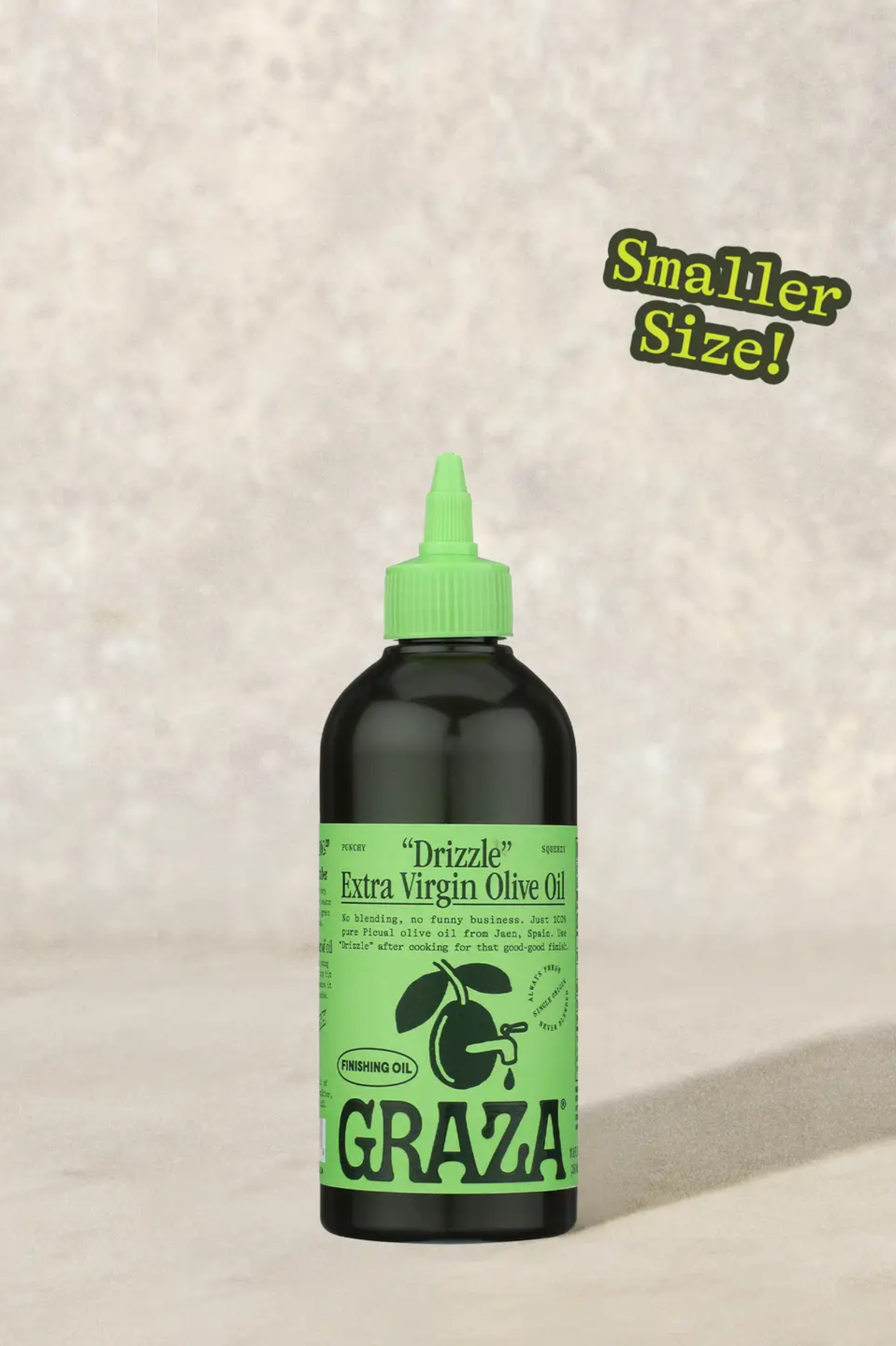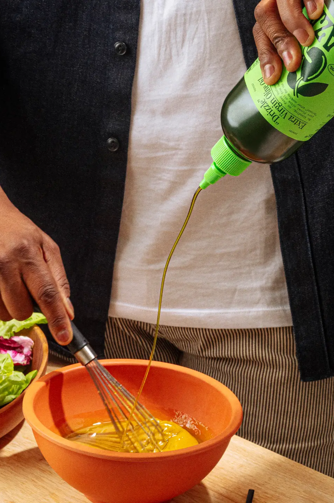 “Drizzle” is 100% Extra Virgin finishing oil. It’s made from olives that are picked early, when flavor is bold and antioxidants are highest.