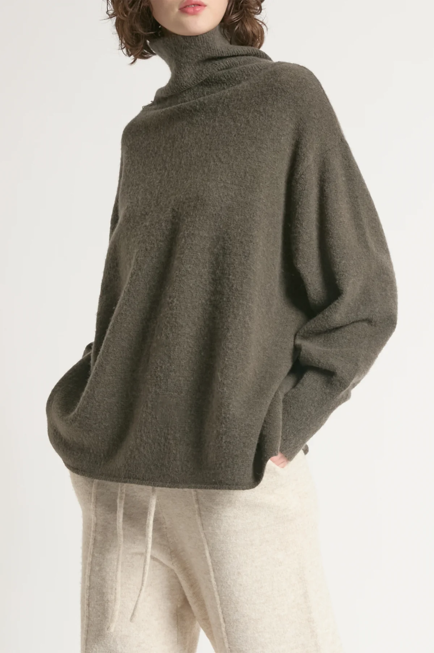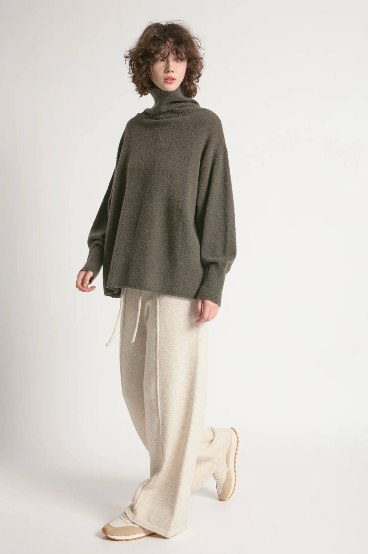 A slouchy turtleneck sweater designed for effortless layering and styling, offering a cozy, relaxed fit you’ll reach for season after season.