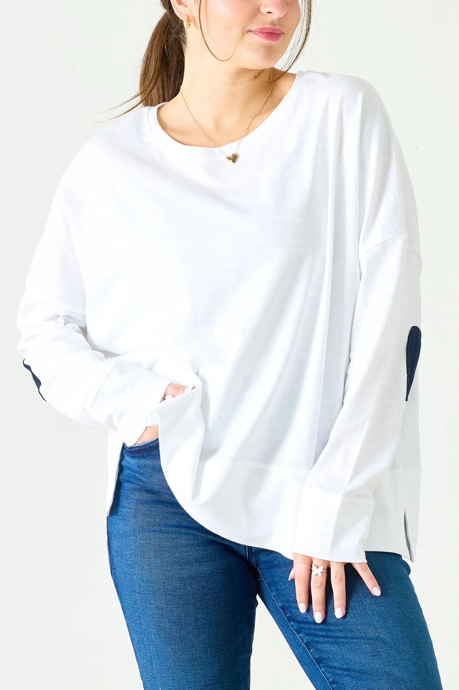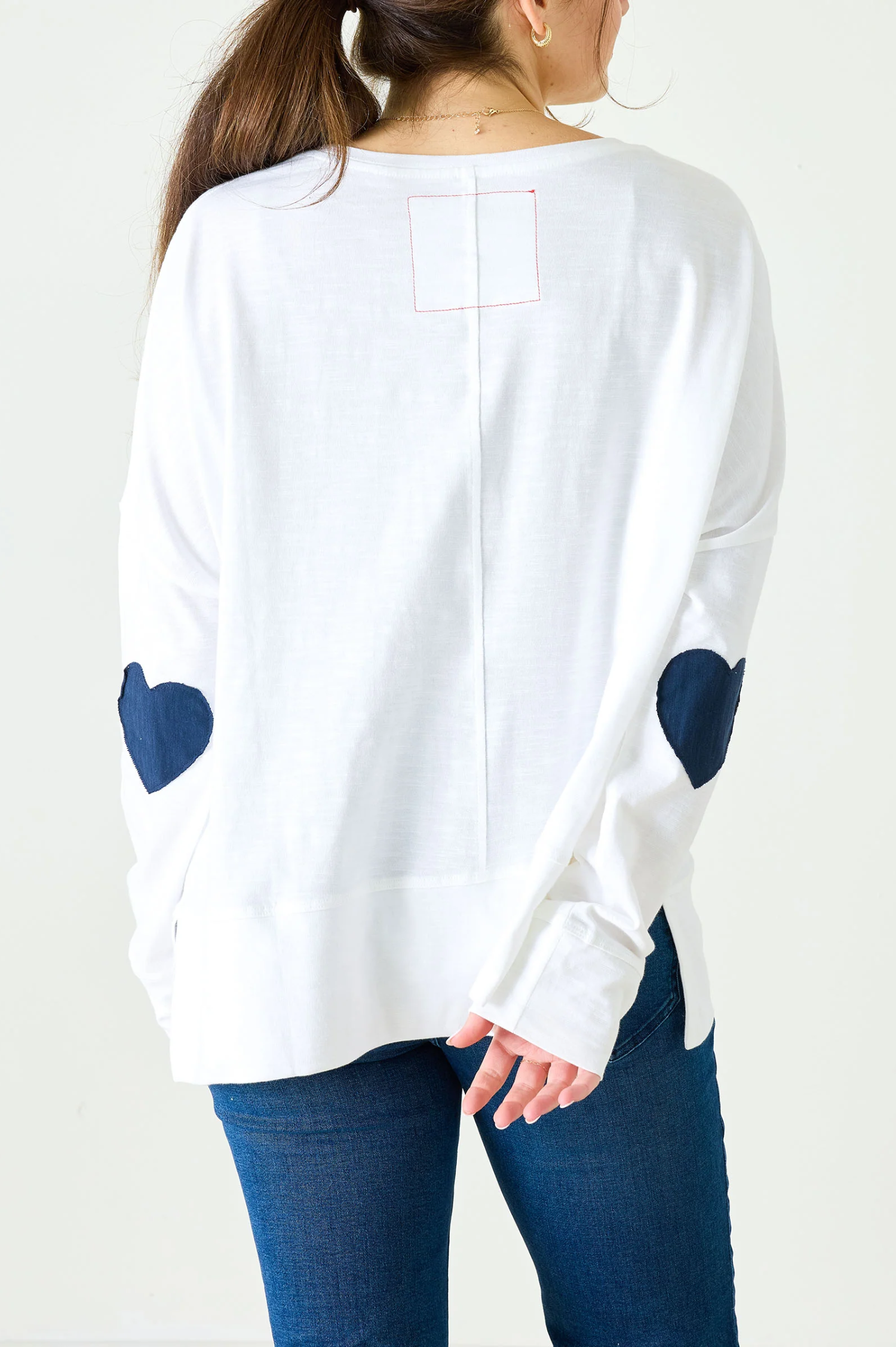 A love letter in tee form, based on our best-selling Amour Sweater. Adorned with heart appliqués and featuring loose shoulders and short side slits for comfort. This faithful, charming tee is perfect for all seasons—let’s face it, love is always in style.
