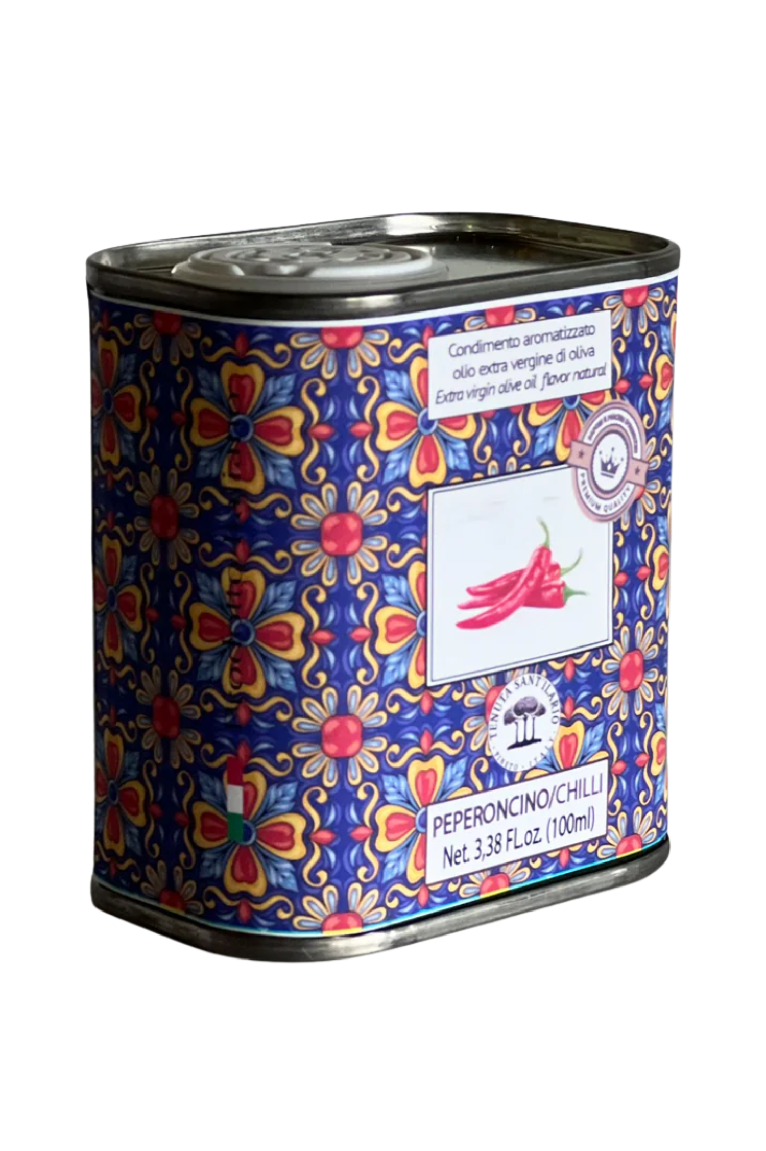 This EVOO comes in different infused flavors to give your meals an additional level of flavor. The Chili Olive Oil packs a punch with premium spicy notes of the pungency of Italian spices. We recommend using the raw olive oil dressing on pasta and risotto, meat carpaccio, salads and fondues. Packaged in decorative tins to protect the integrity of the oil. Each tin is 100ml.