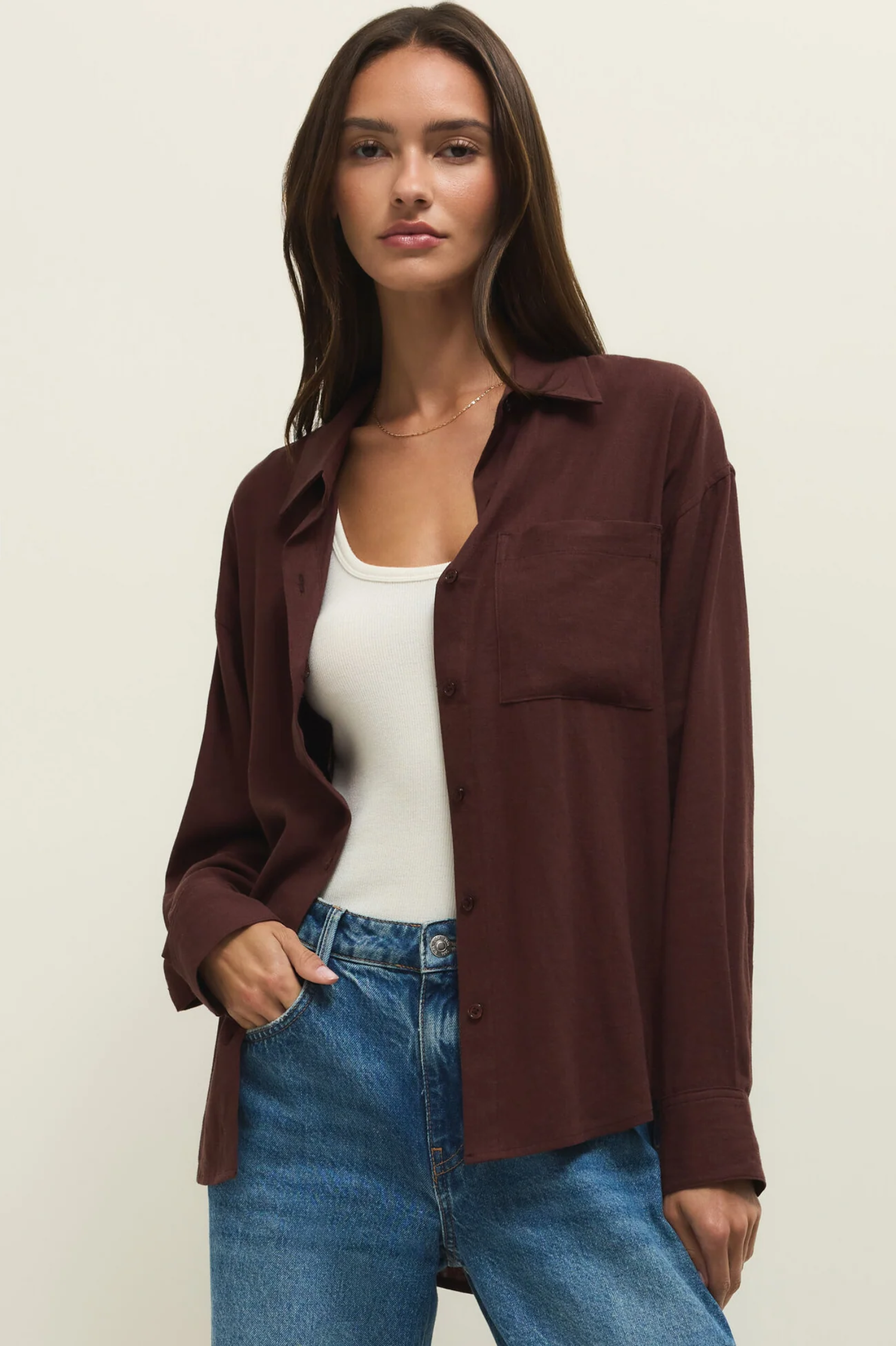 Z Supply Alfie Button Up Shirt - Chocolate Cherry / XS is backordered and will ship as soon as it is back in stock.