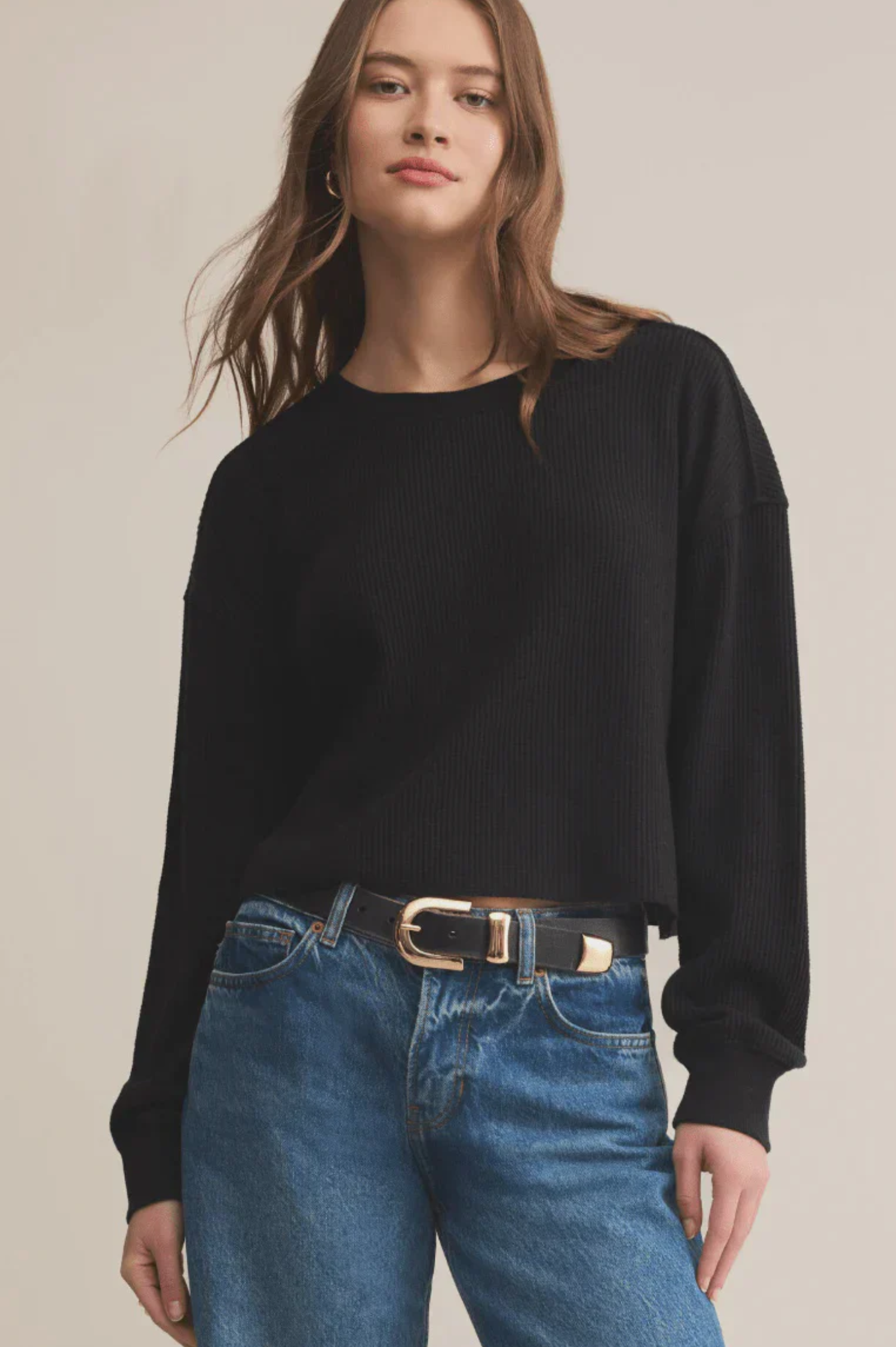 Easy, breathable, and just the right amount of relaxed. This mineral-washed, cropped thermal features soft waffle knit and subtle seaming details that elevate your everyday rotation.