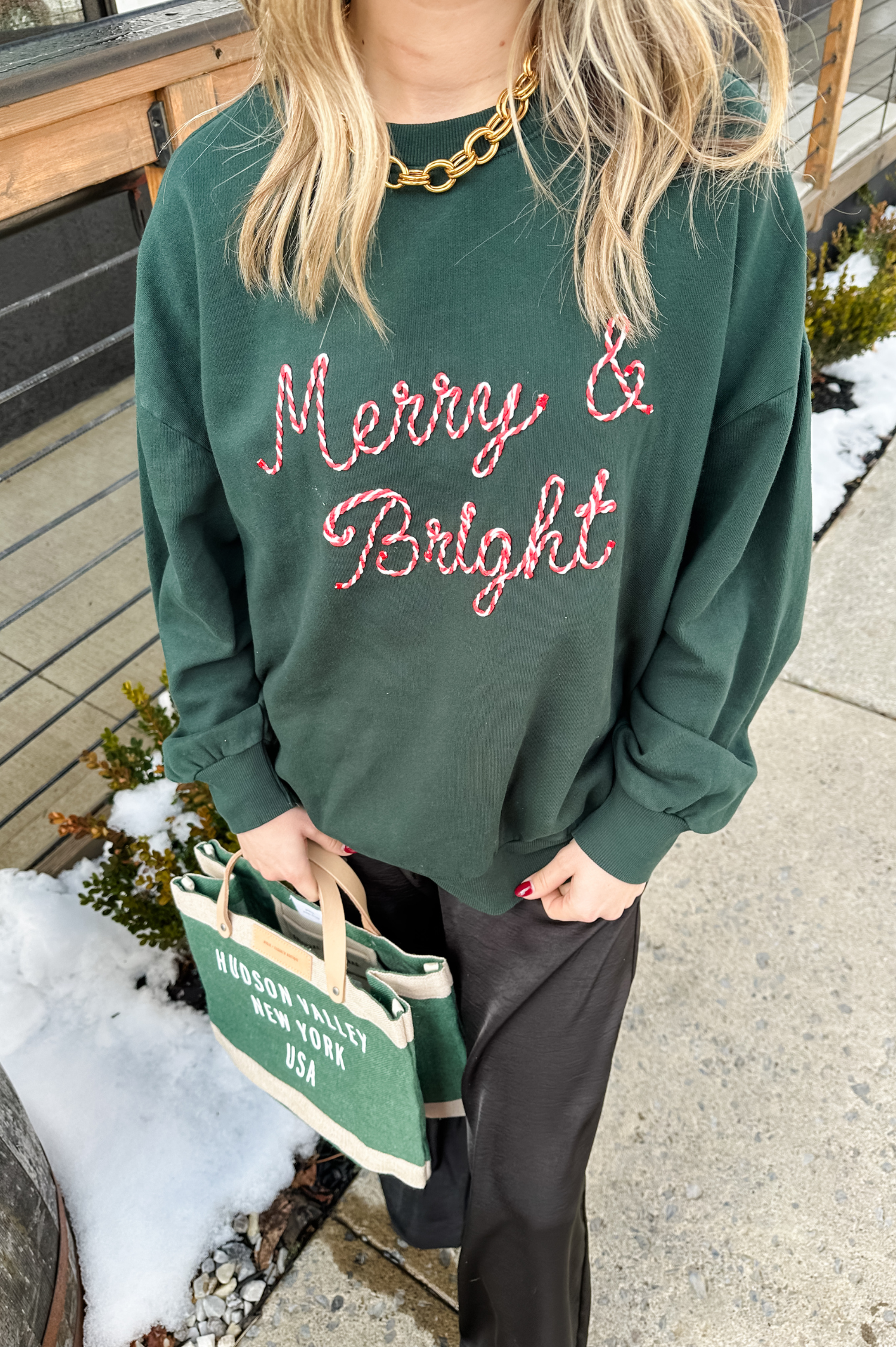 Designed in brushed cotton fleece with an oversized fit, this sweatshirt feels both comfortable and polished. The raised cord applique “Bright” graphic brings a playful touch of texture, making it a standout piece for seasonal styling.