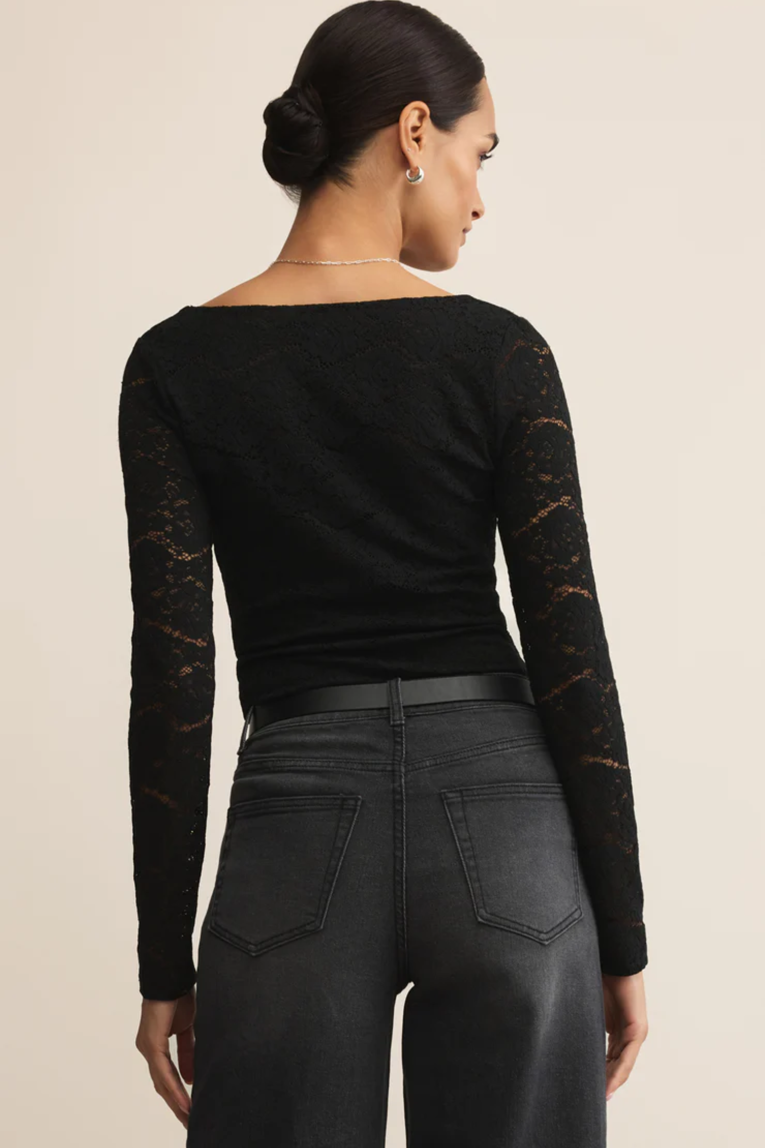 Designed in stretch floral lace with a scalloped neckline, this fitted bodysuit is equal parts sultry and sophisticated. With its long sleeves and streamlined silhouette, it’s the piece you’ll turn to for nights out, layered looks, and everything in between.